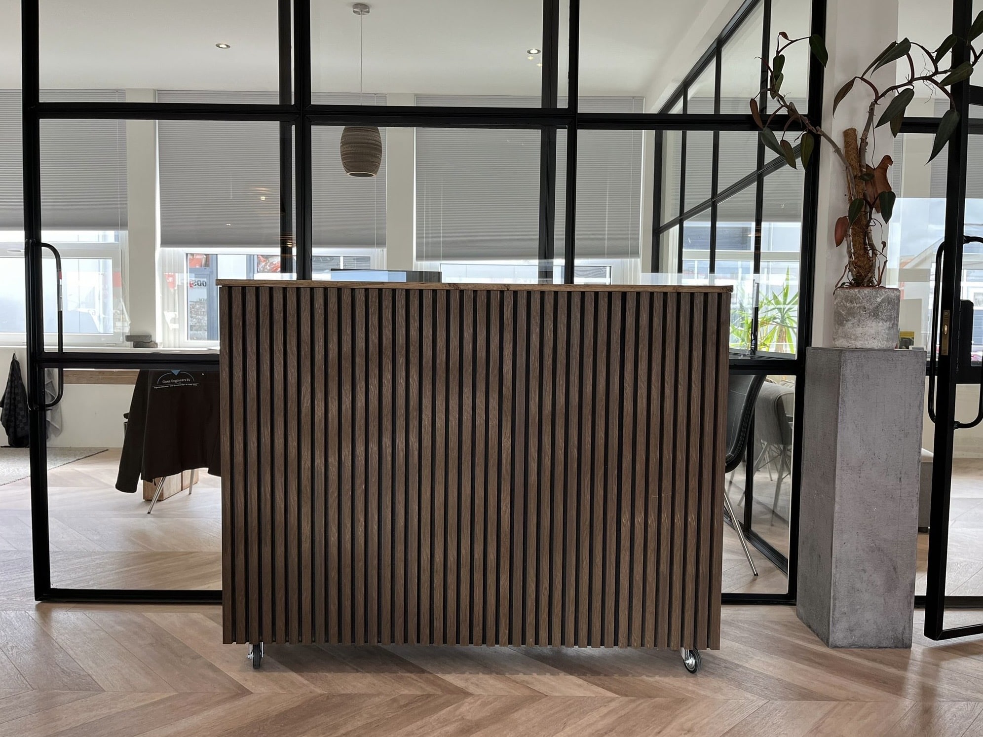 Bloembak Jilles met akoestische panelen