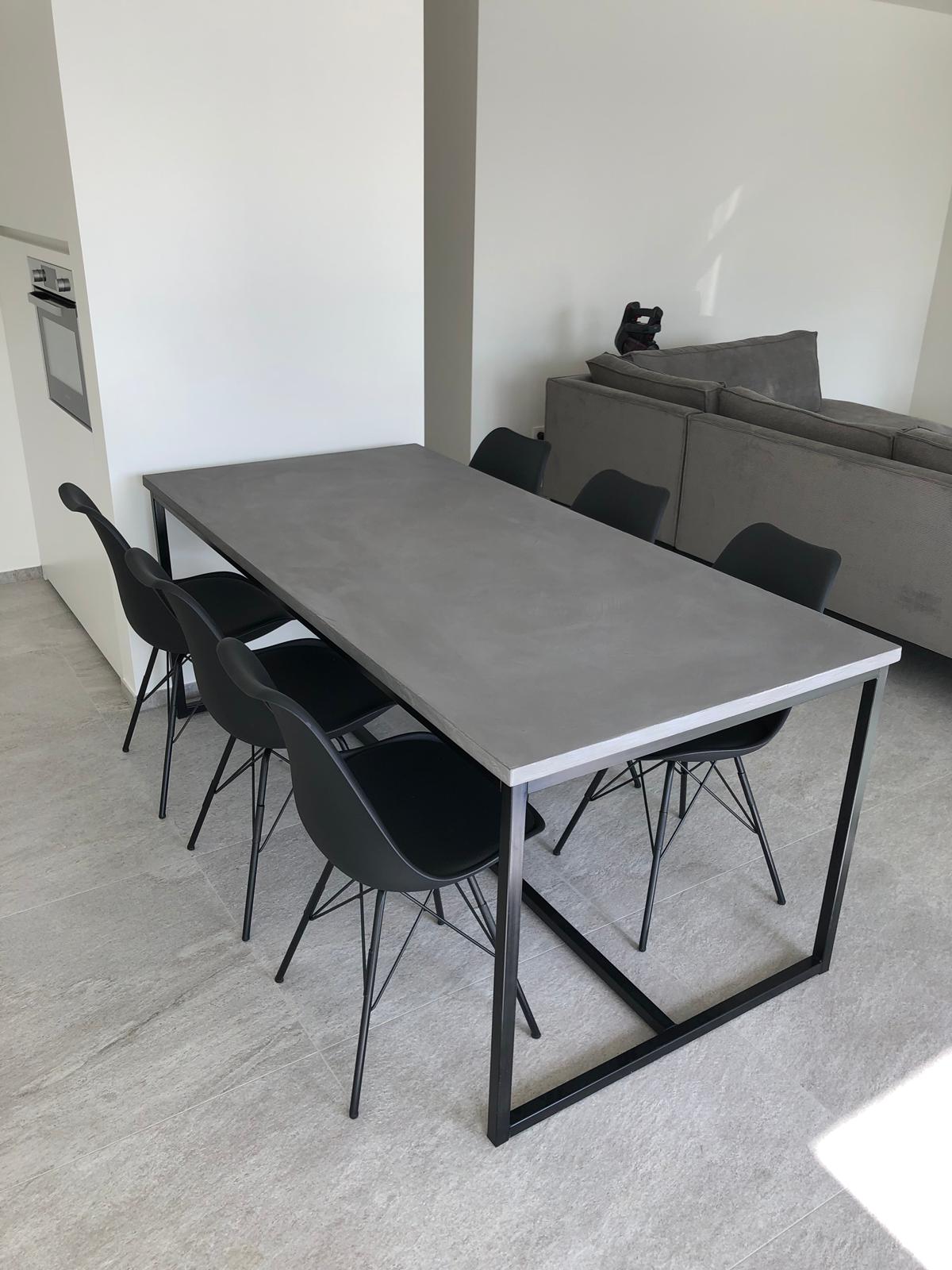 - Losse tafelbladen met betonlook.
