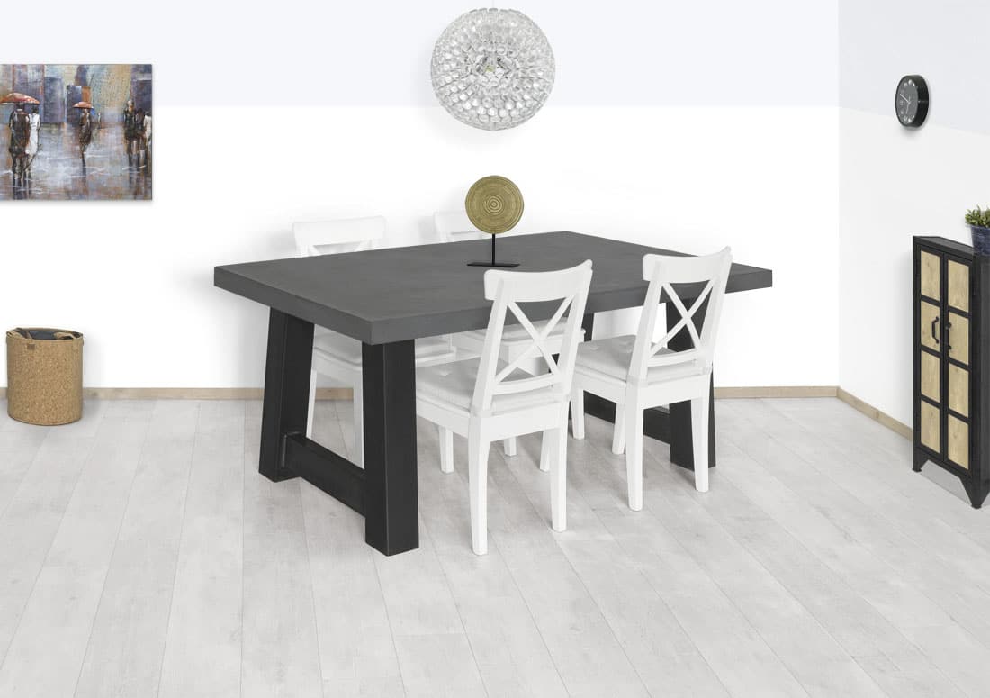 Betonlook tafel Lefor met eikenhouten matrix poot