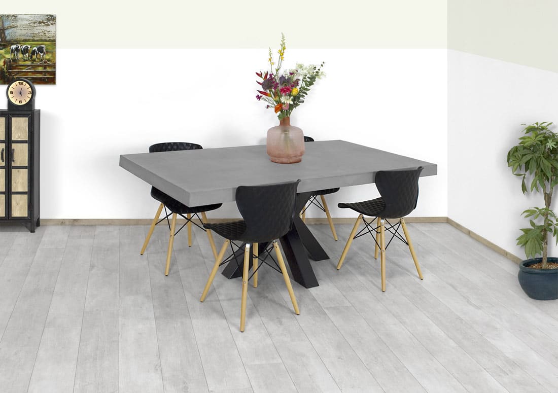 Betonlook eettafel Essie met O poten