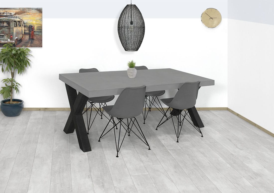 Betonlook industriële tafel Waves met X poten