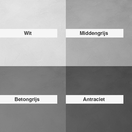 Aan het beton ciré kan een kleurstof worden toegevoegd. Wij gebruiken kleurstoffen waarmee we de kleuren; wit, betongrijs, middengrijs en antraciet maken. Deze kleuren geven elk meubel zijn eigen karakter. Dit betekent ook dat je altijd een uniek meubel hebt. Je kunt samples aanvragen.