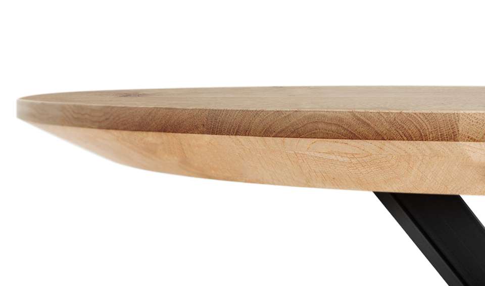 Bij de eikenhouten tafels kun je kiezen voor een verjongde rand. Een verjongde rand betekent dat de rand van het tafelblad 45 graden naar binnen is gezet. Dit geeft een effect van een zwevend tafelblad en ziet strak uit. Daarnaast kun je kiezen voor een bepaalde dikte van het tafelblad. De dikte staat aangegeven bij de tafel in centimeters.