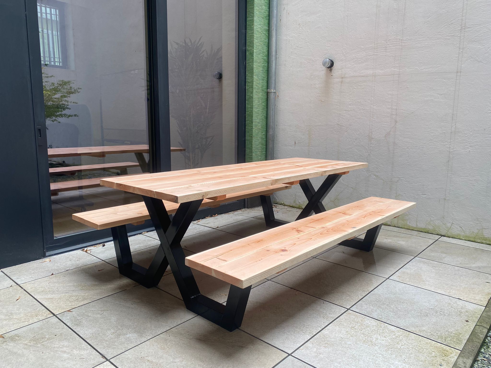 Douglashout picknicktafel Clune met stalen X poten