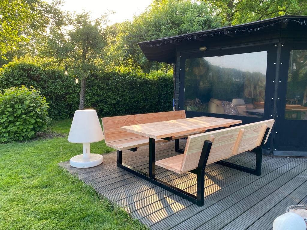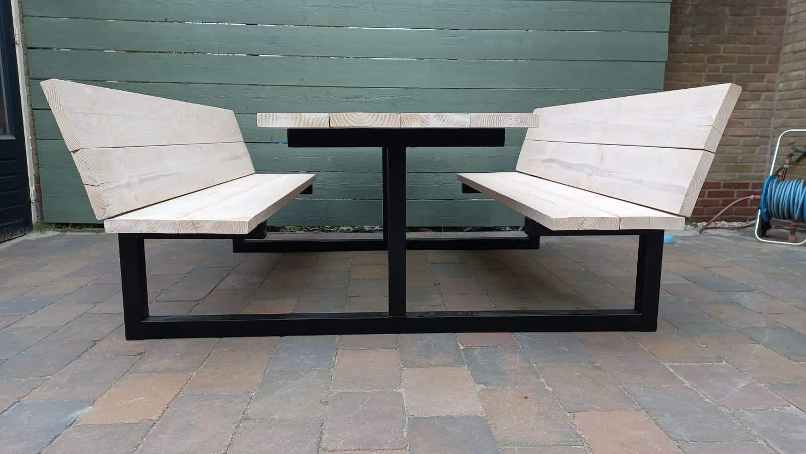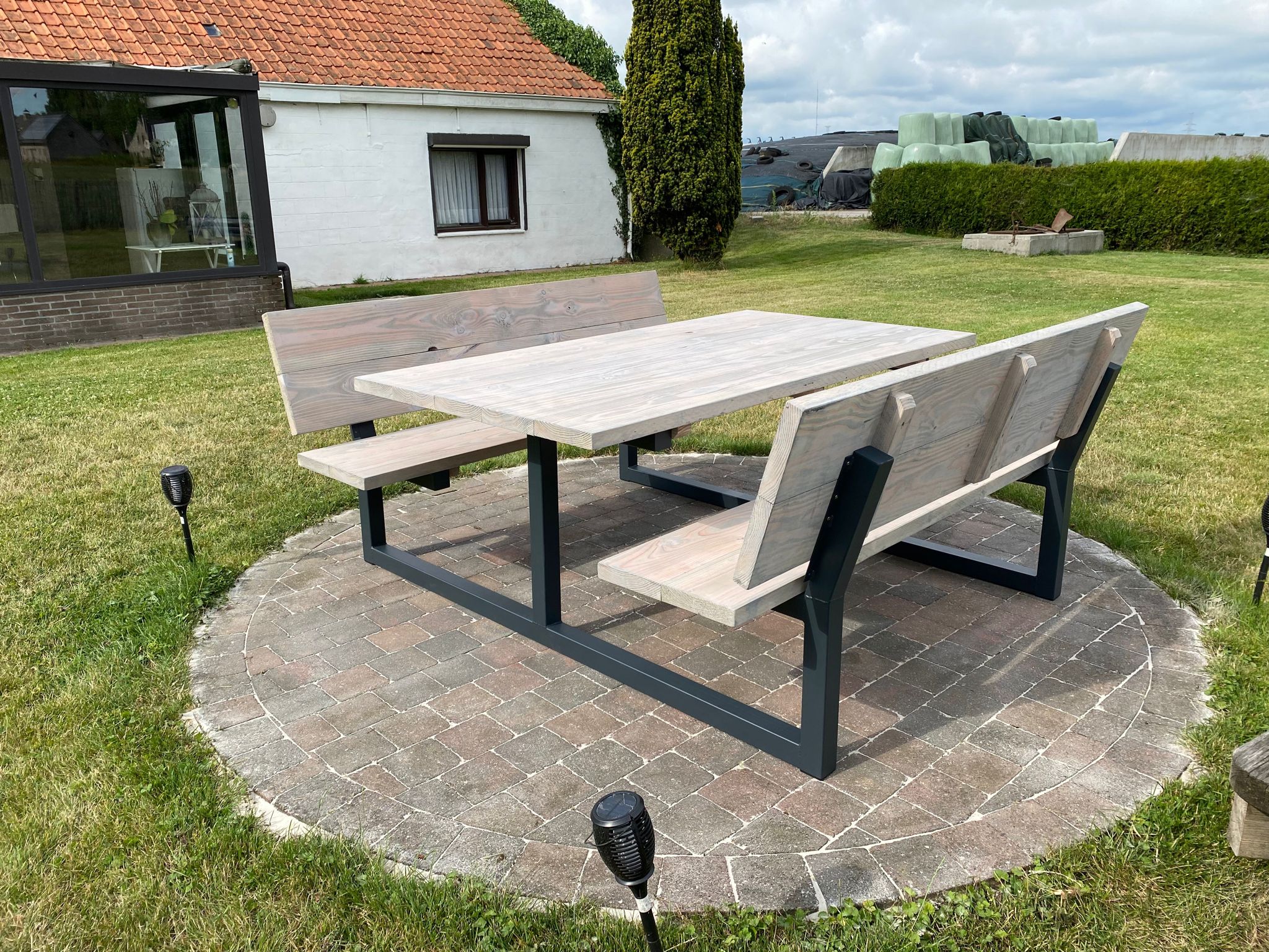 Douglashout Picknicktafel Wolf met industrieel W frame