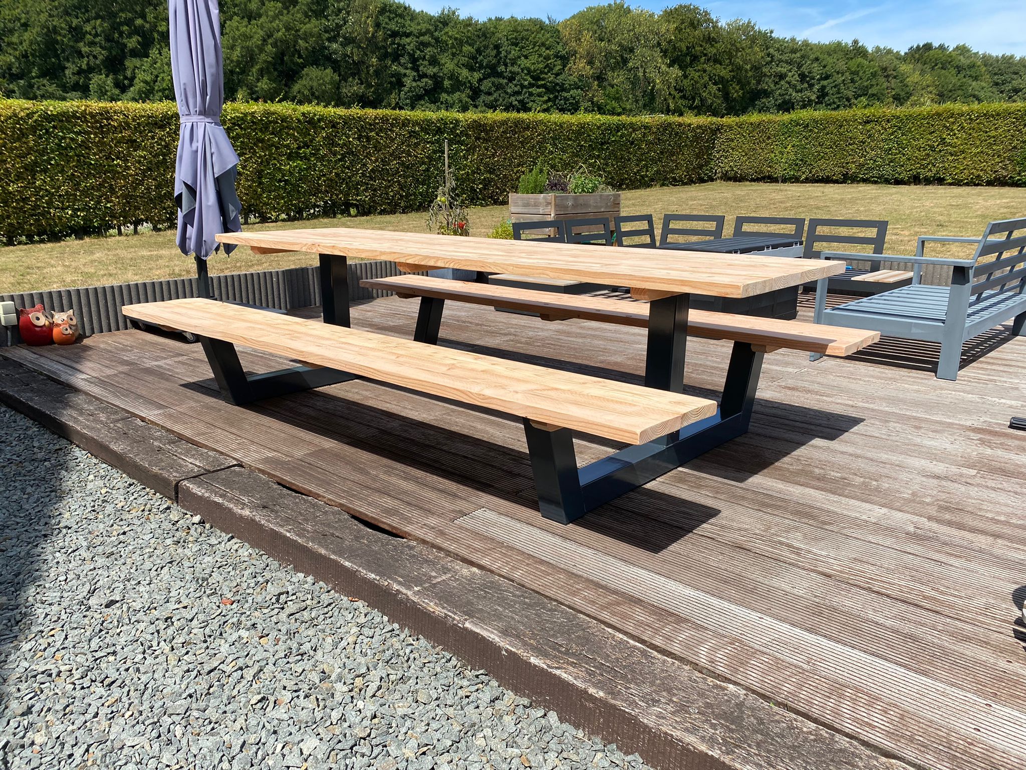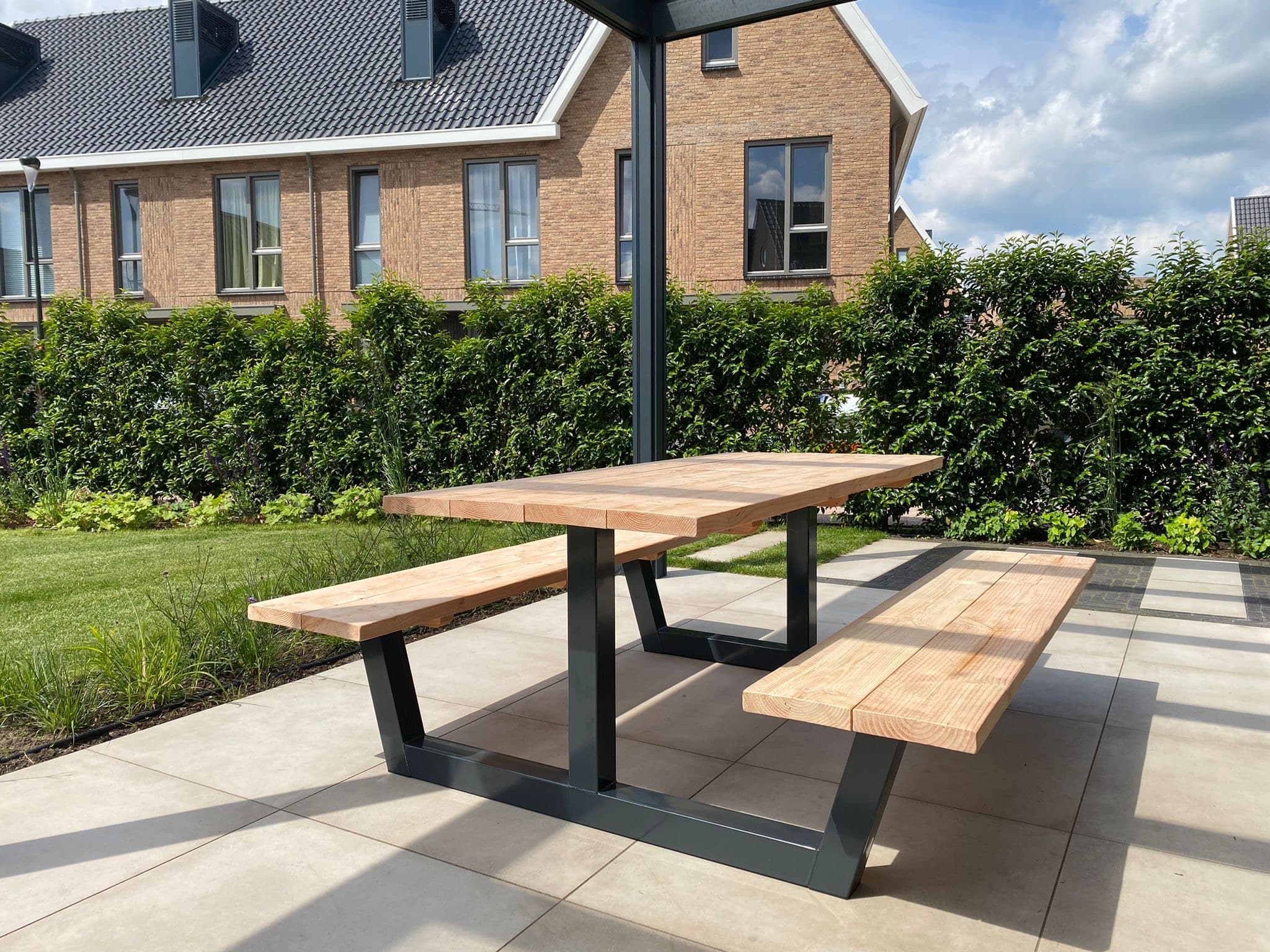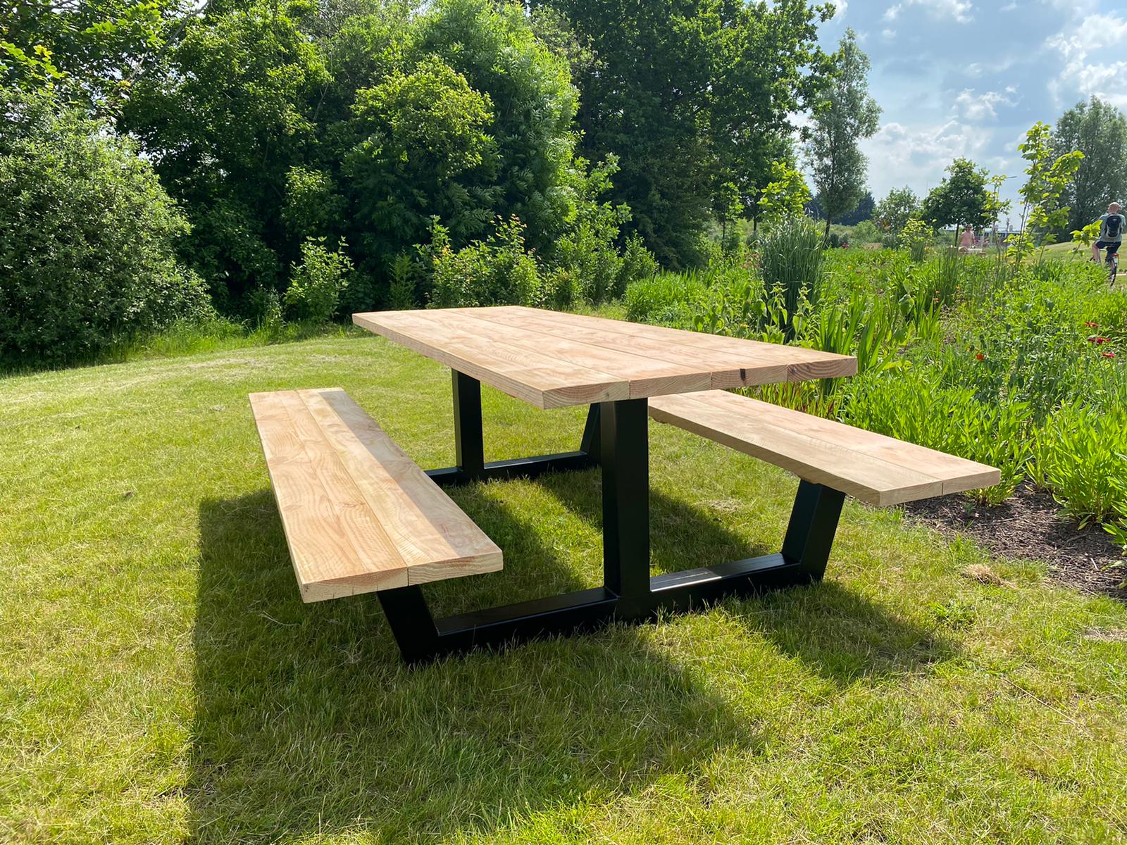 Douglashout picknicktafel Gorin met stalen anker poot