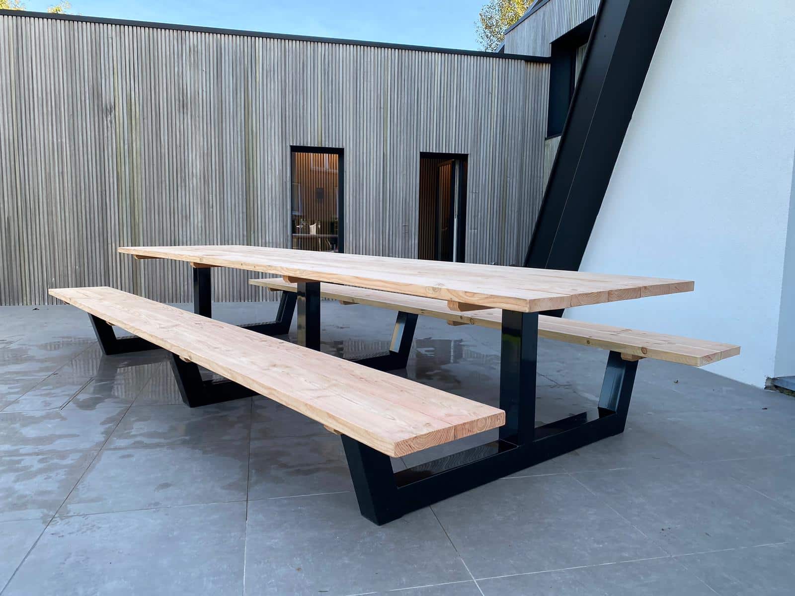 Douglashout picknicktafel Clune met stalen X poten