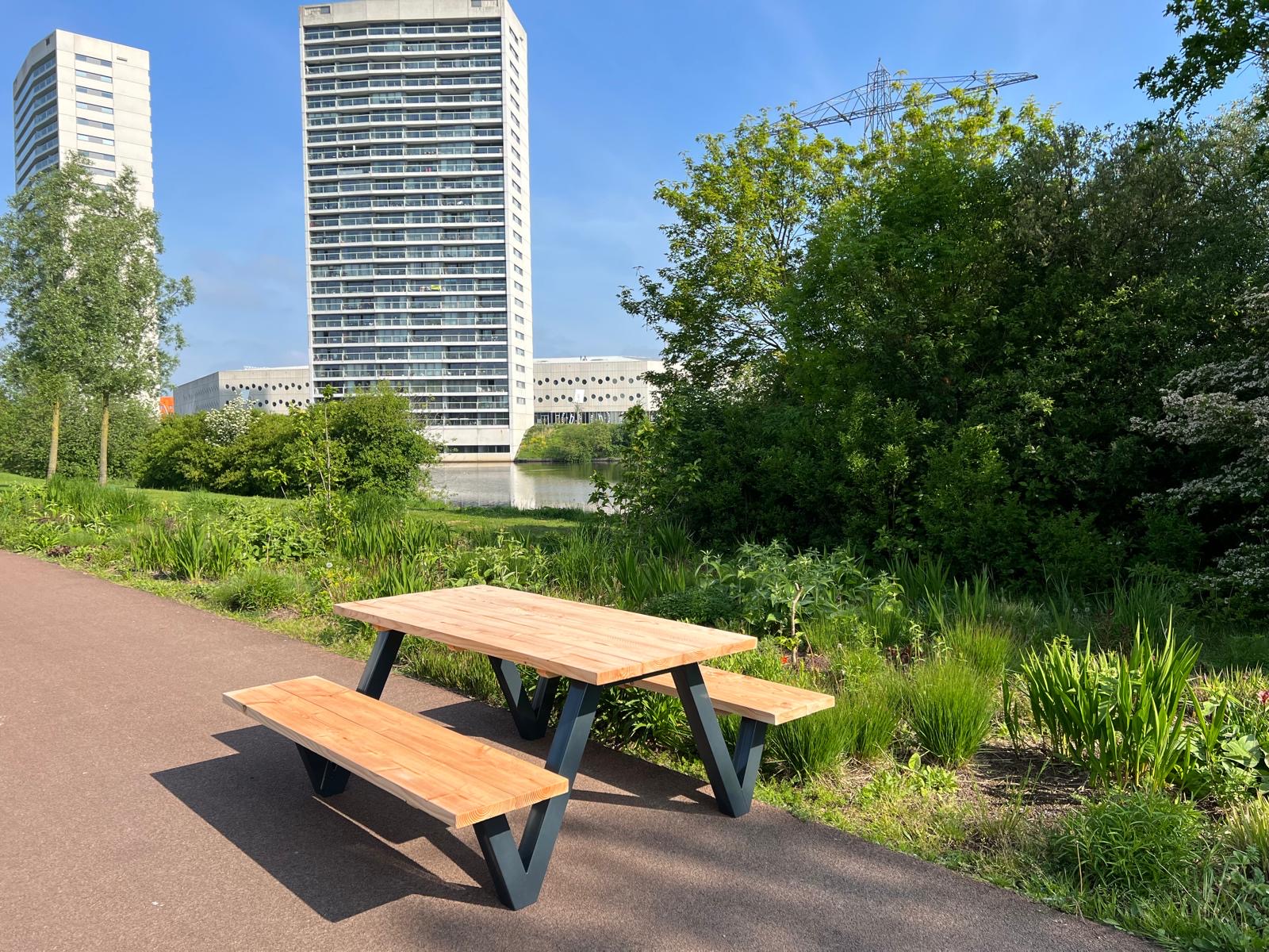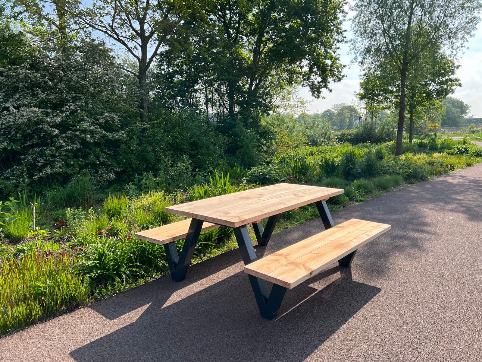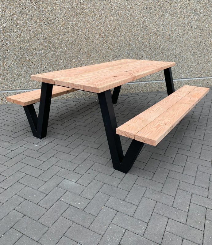 Douglashout picknicktafel Timo met stalen E frame