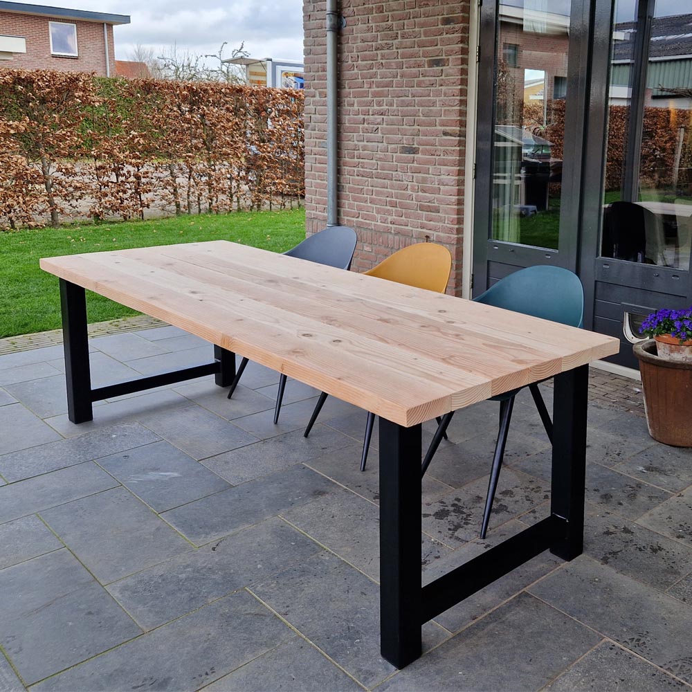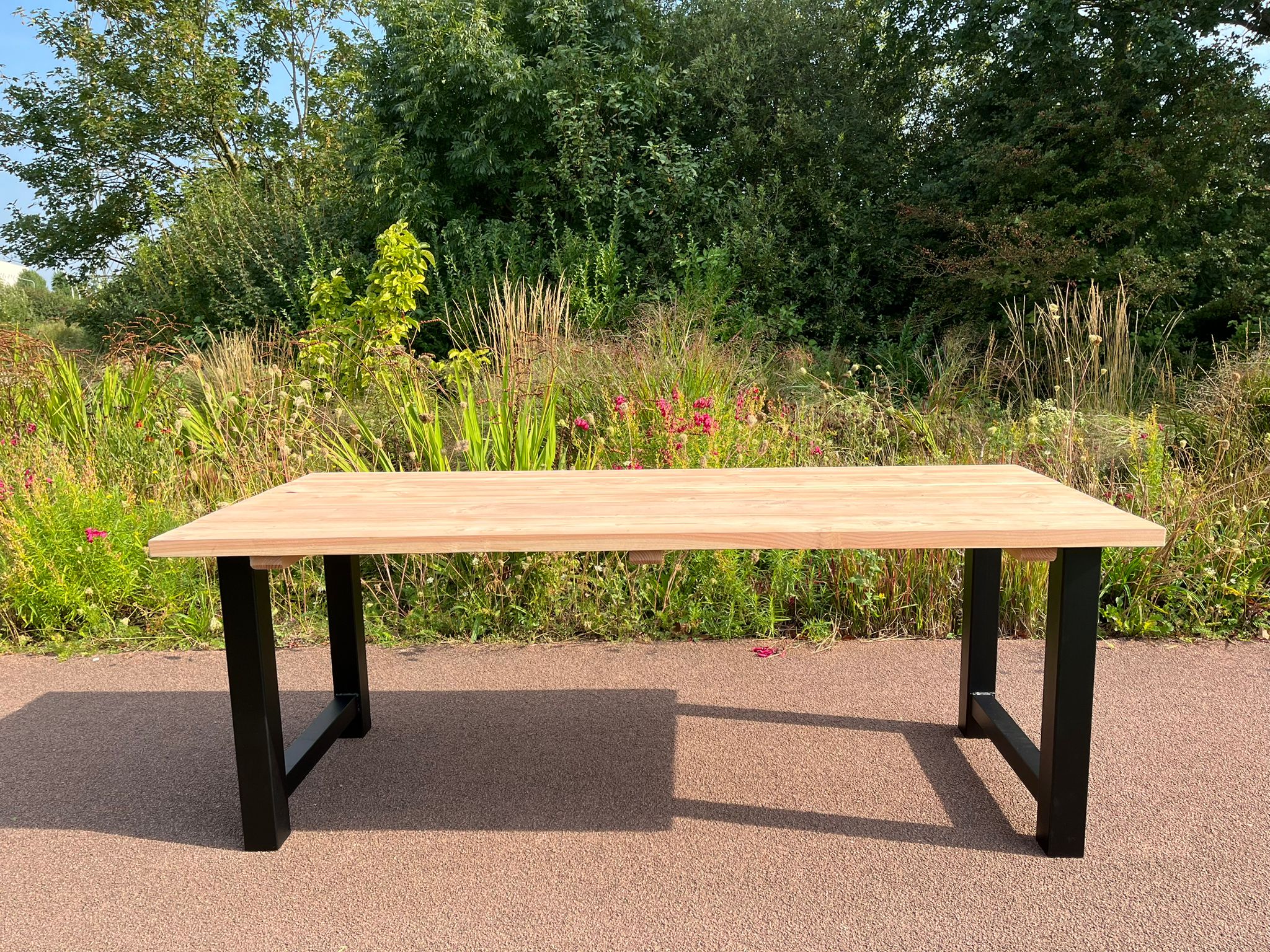 Tuintafel Oscar douglashout met stalen trapezium poten