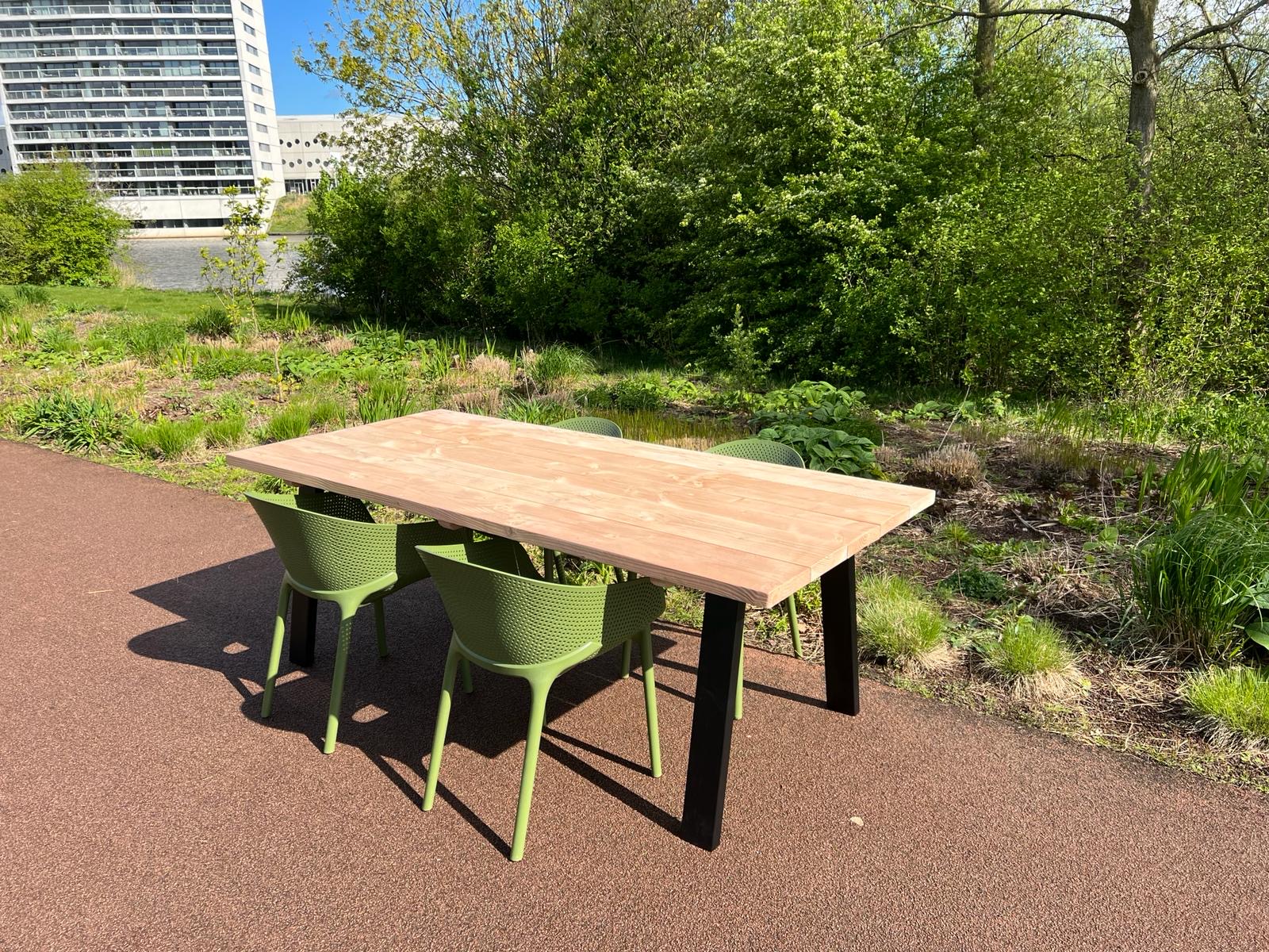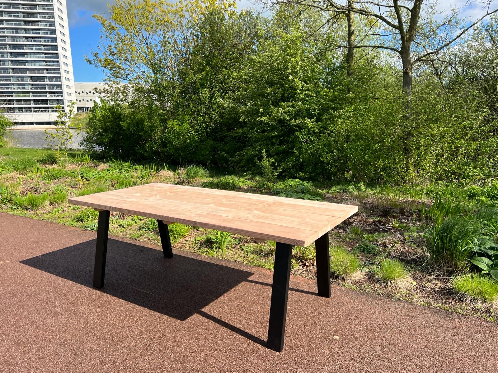 Douglashouten tuintafel Gary met stalen A poten