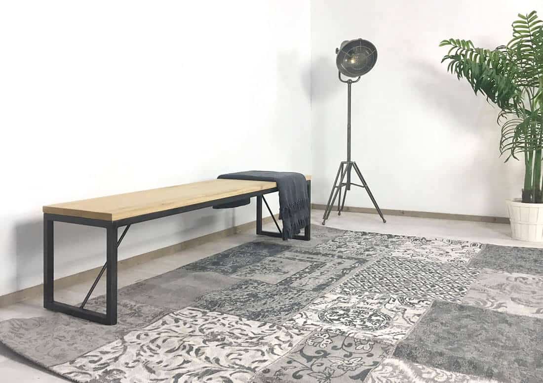 Bankje Bennet is strak en heeft een leuk industrieel stalen frame. Het zitvlak is gemaakt met 3 cm dik eikenhout, maar is naar wens op te dikken. En dit zijn niet de enige verandering die je kunt doen.