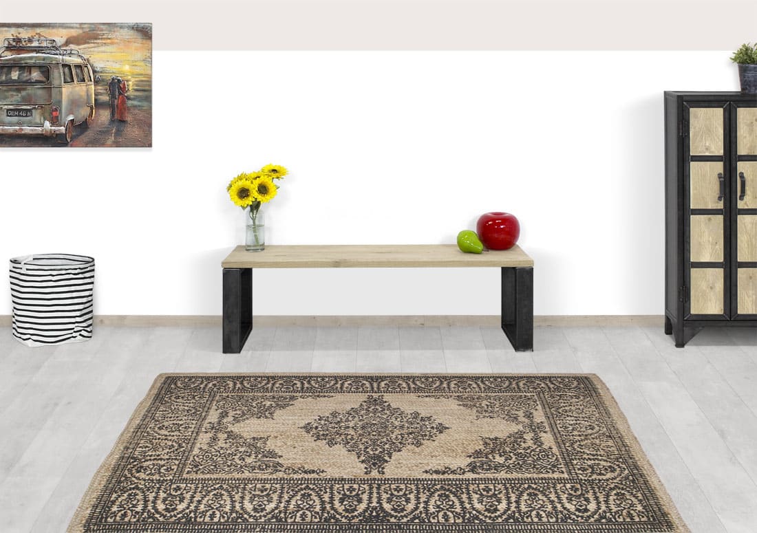 Eikenhouten bankje Pima met industrieel onderstel