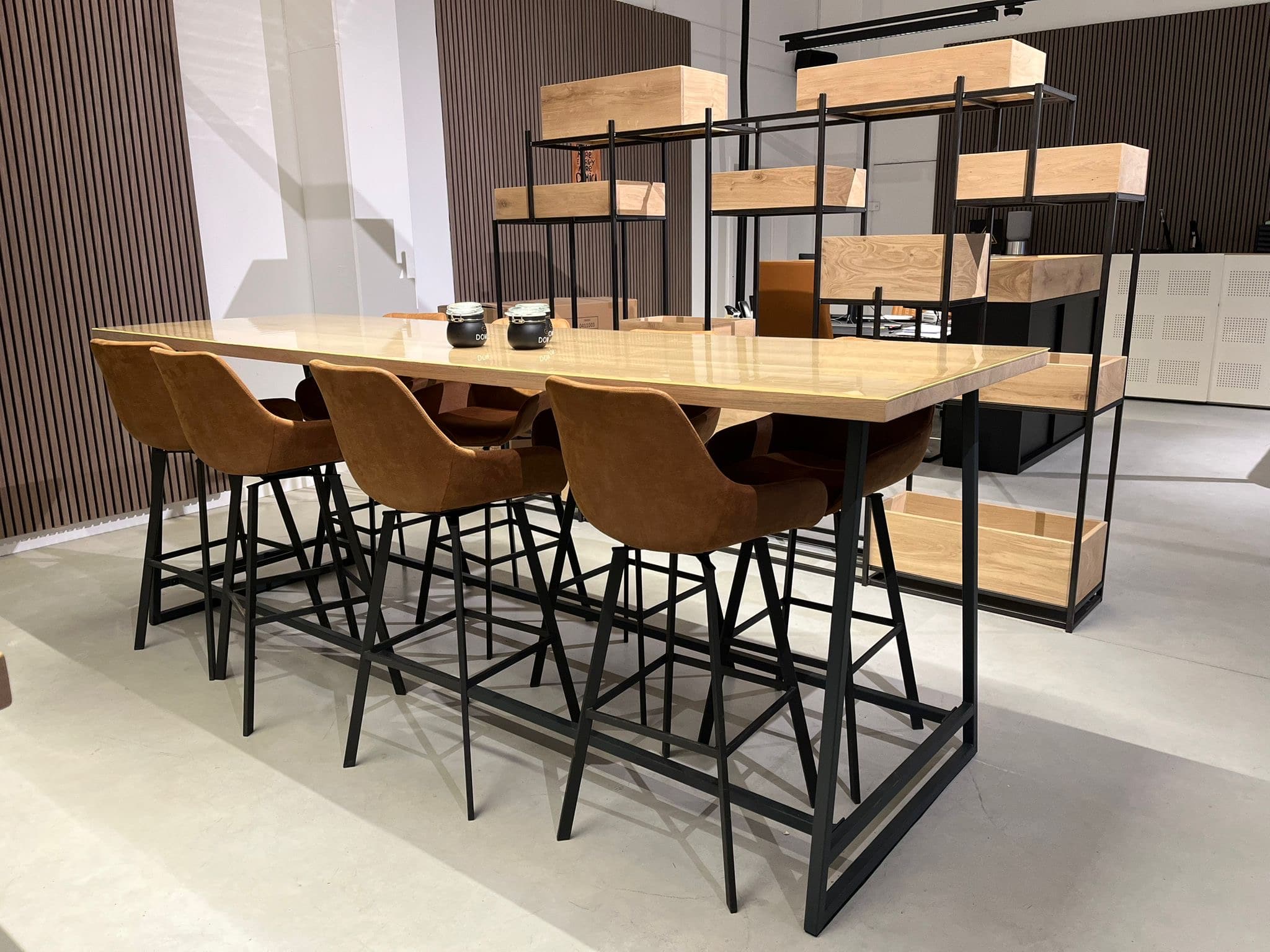Eikenhouten statafel / bartafel Daisy met stalen frame