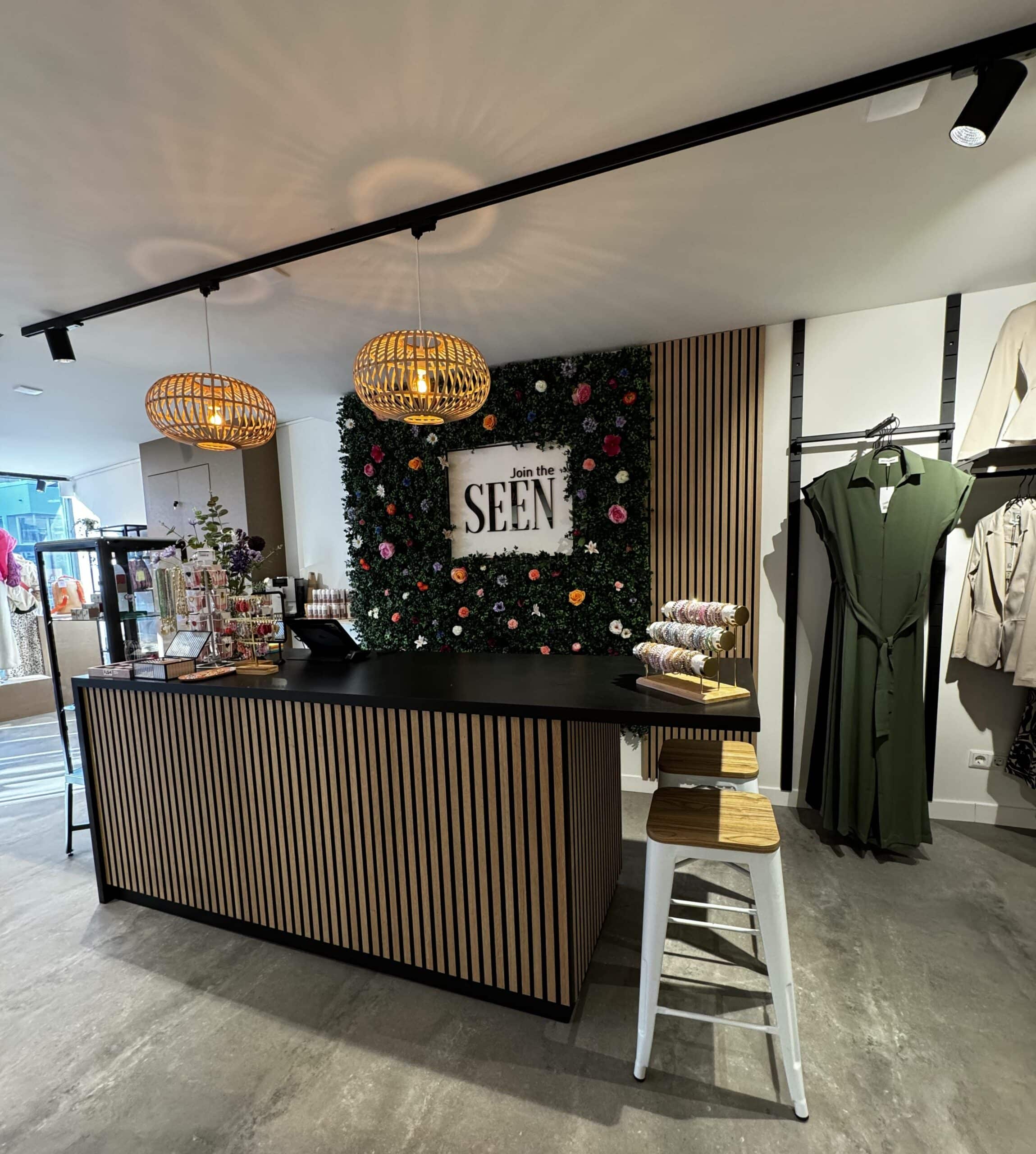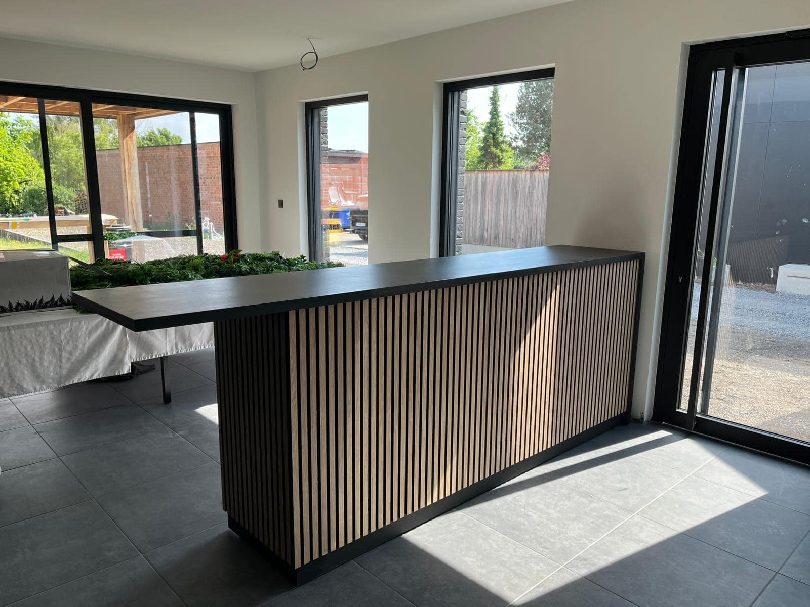 Eikenhouten toonbank Elodie met akoestische panelen