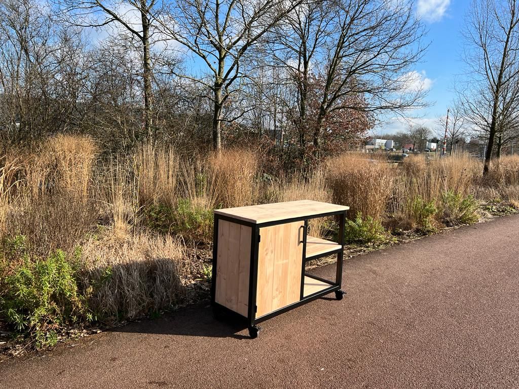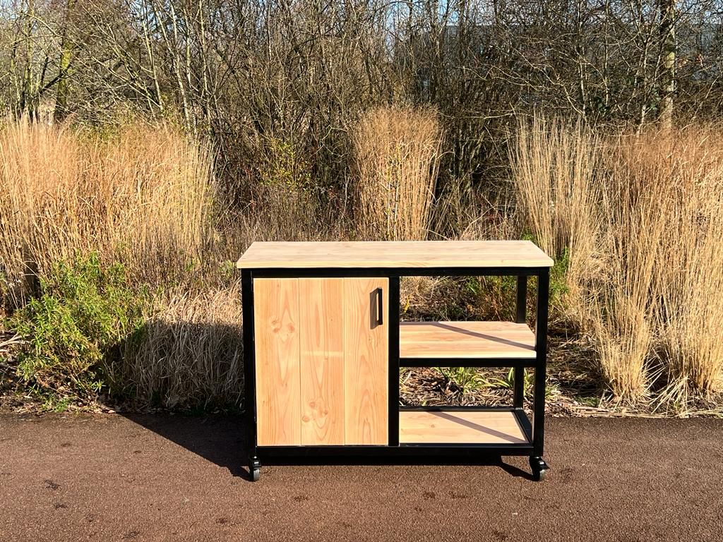 Douglashouten buitenkeuken Mooze met industrieel frame en deuren
