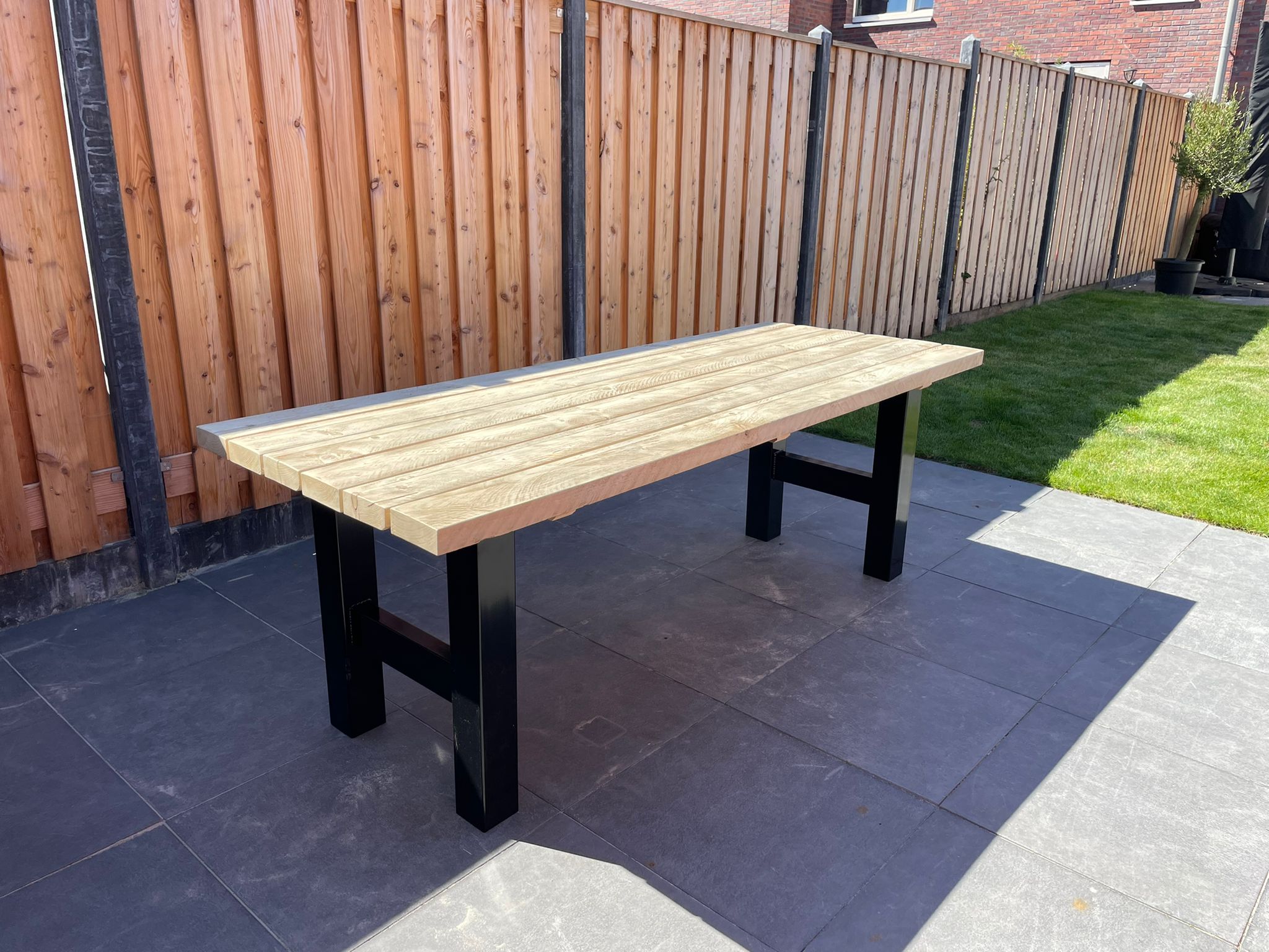 Steigerhouten tuintafel Malta met stalen U poten