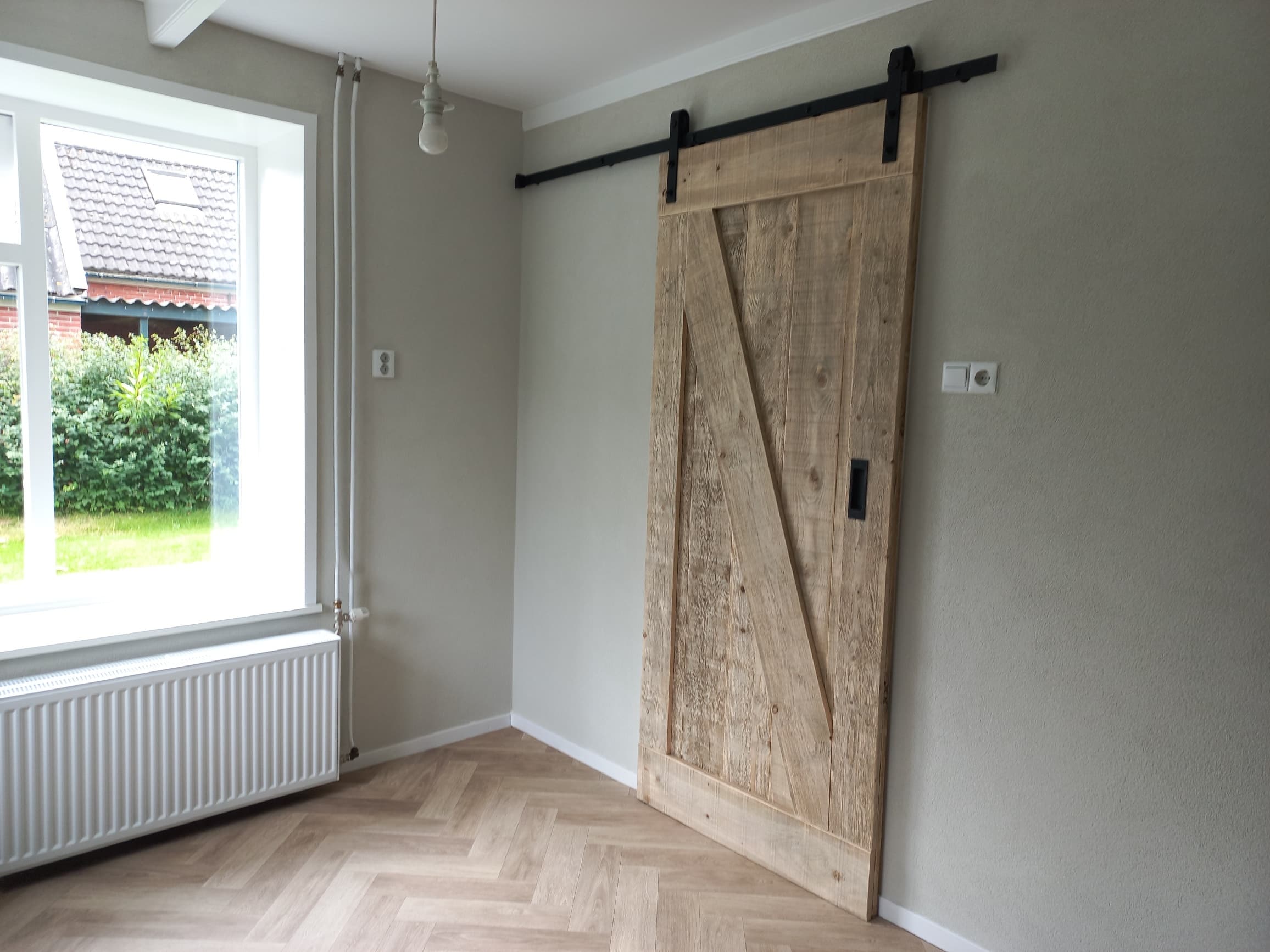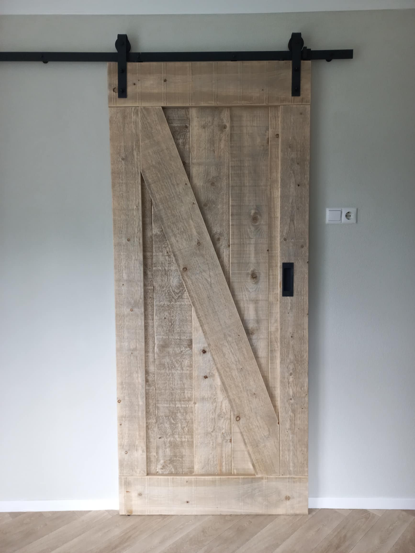 Steigerhouten loft-/schuifdeur met industrieel ophangsysteem