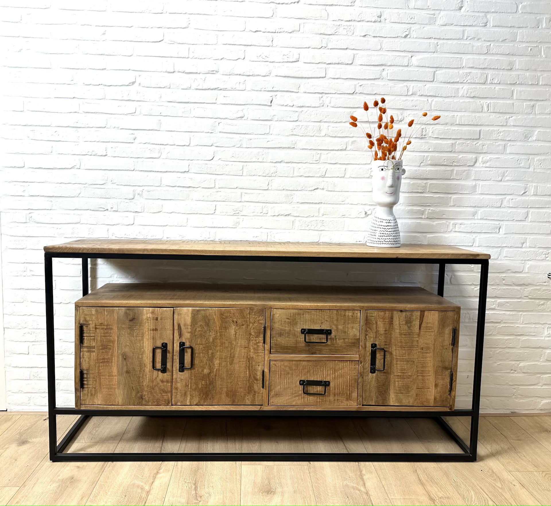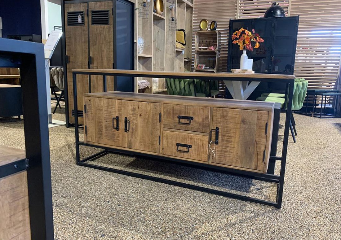 Mangohout dressoir Tom met 3 deuren en 2 laden