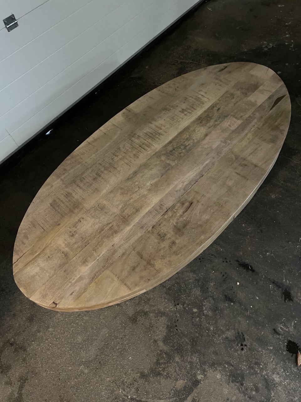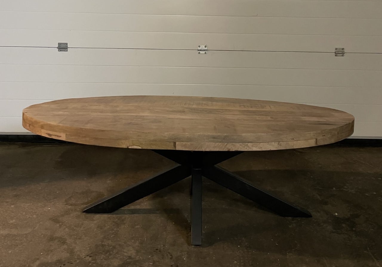 Mangohout salontafel Kenji ovaal met matrixpoot