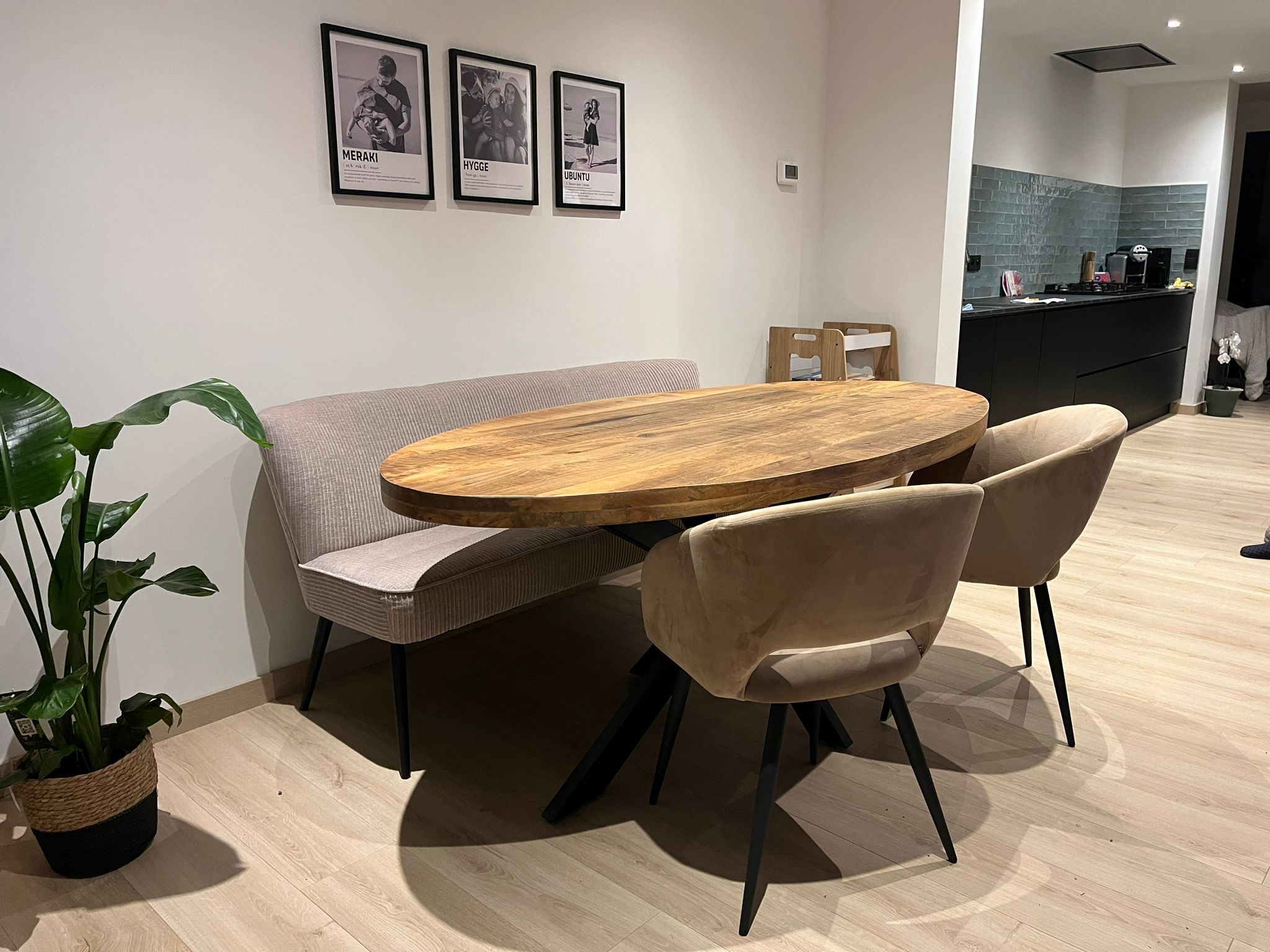 Eettafel Dente mangohout met ronde poten en hoeken