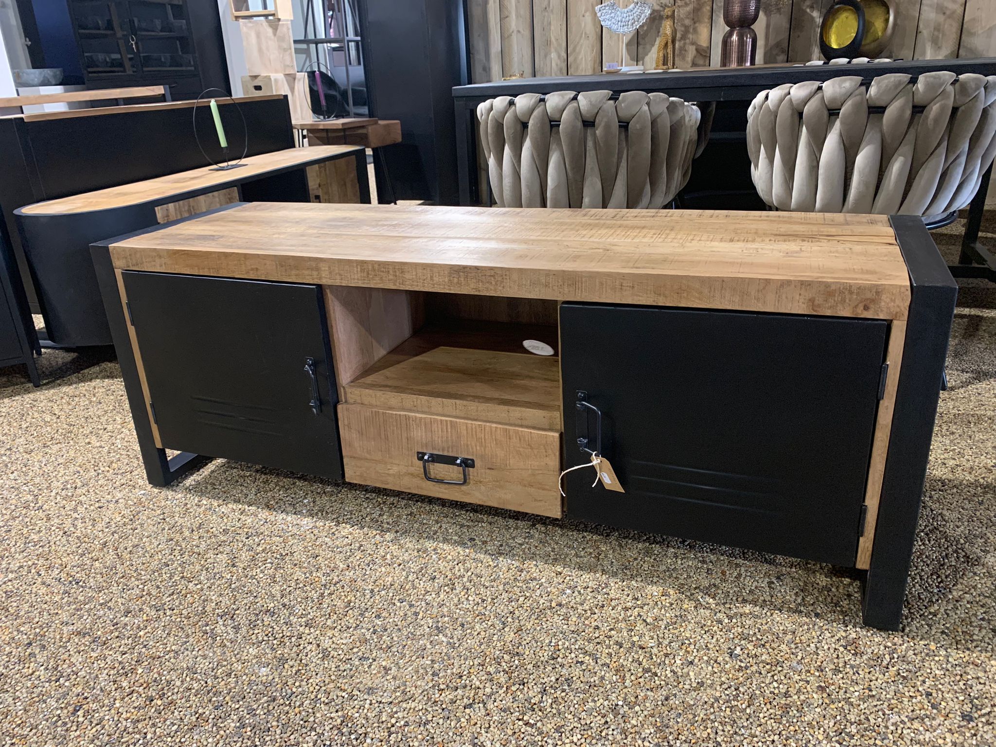 Mangohout tv-meubel Kaj met 2 metalen deuren en 1 lade