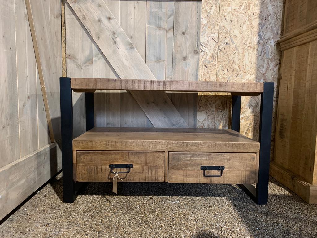 Mangohout tv-meubel Kaj met 2 metalen deuren en 1 lade