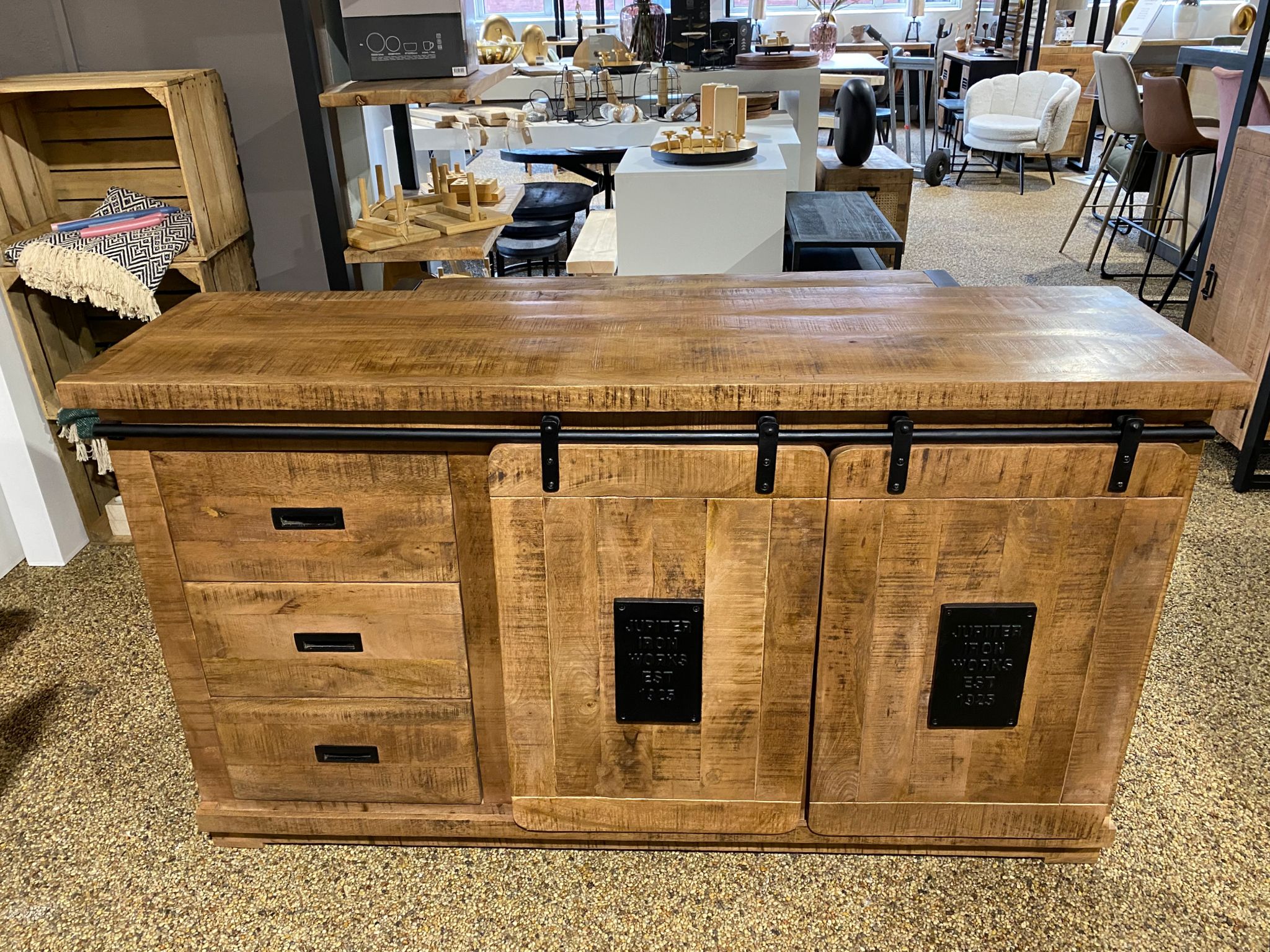 Mangohouten dressoir Rafael met lades en schuifdeuren