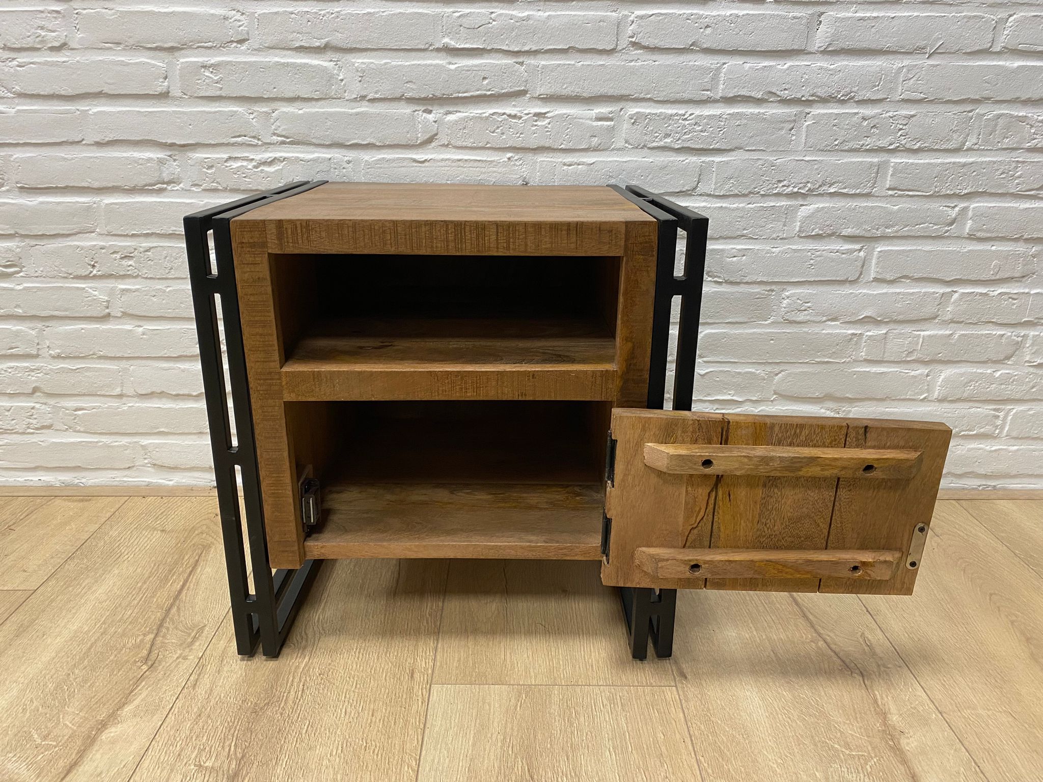 Mangohouten nachtkastje Vise met staal en deur