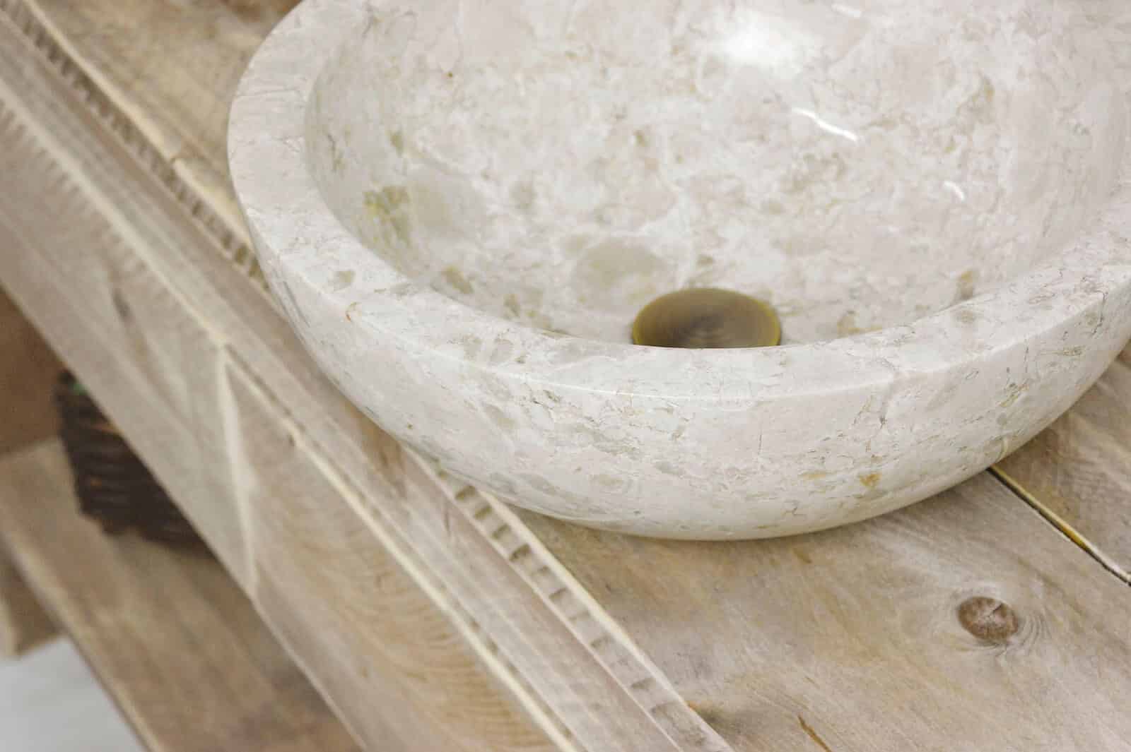 Prachtig badkamermeubel voorzien van twee lades. De marmeren waskommen kunt u los bij bestellen. De waskommen geven een natuurlijke touch aan uw badkamer.