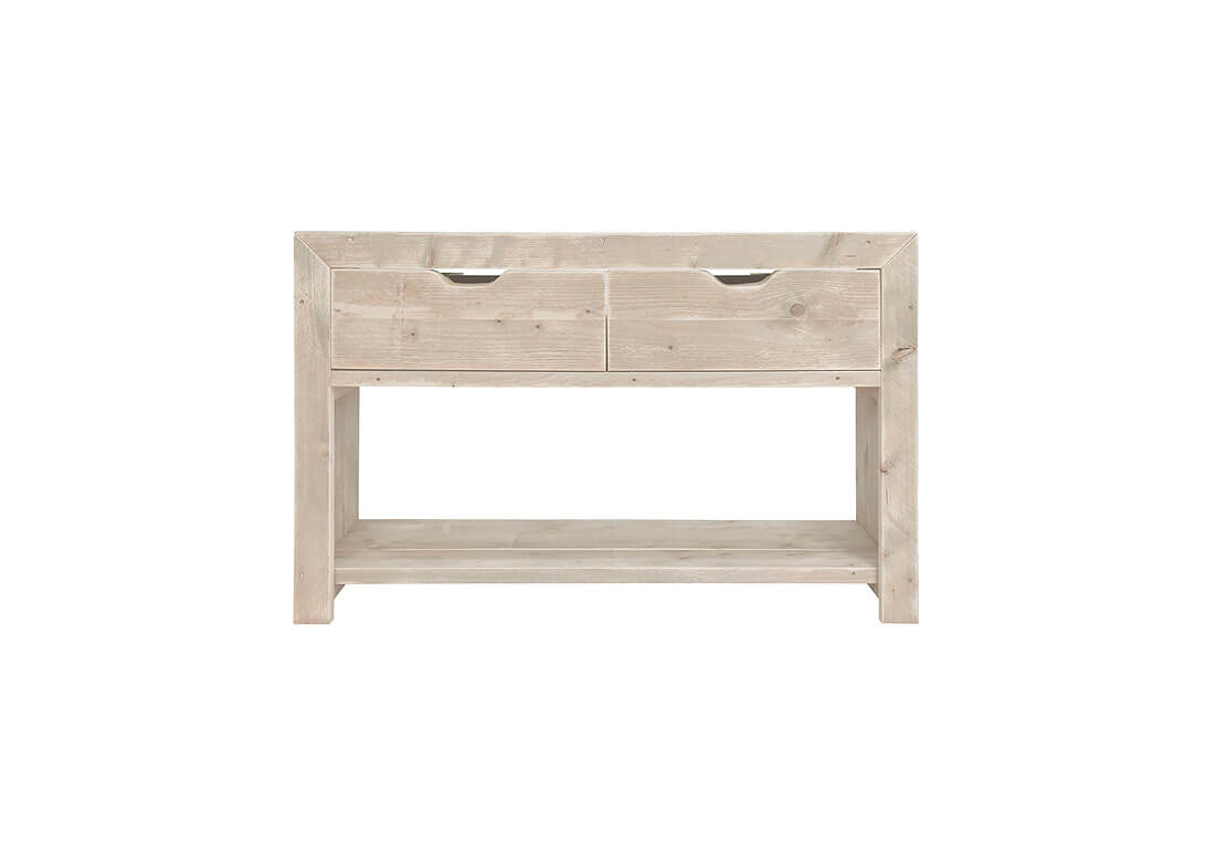 Badkamermeubel Judson is een steigerhouten model voorzien van 2 lades. Het meubel heeft een robuust design en is daardoor erg geschikt voor in een landelijk interieur. De Judson is ideaal te gebruiken als opberger door de handige lades en de legplank die je bijvoorbeeld voor handdoeken kunt gebruiken. Ook kun je dit model gebruiken als wastafel. Je kunt dan kiezen om één of twee marmeren waskommen bij te bestellen die wij speciaal voor dit model hebben uitgekozen.