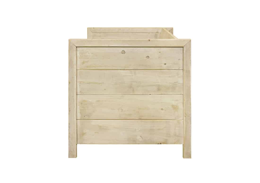 Onze steigerhouten meubels worden standaard onbehandeld geleverd. Voor binnen gebruik is een behandeling niet altijd nodig, maar onthoud wel dat ongelukjes in een klein hoekje zitten. Denk maar aan een glas drinken dat omvalt. Daarom adviseren wij altijd de nanocoating. De coating zorgt ervoor dat water niet in het hout trekt.