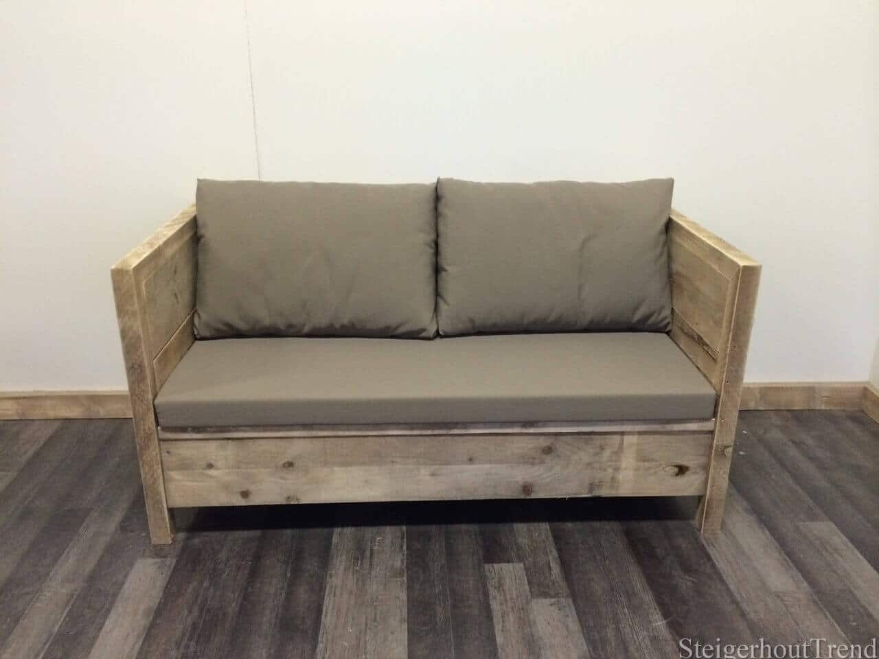 Een nieuwe aanwinst voor het assortiment. Vrolijk de tuin op met dit prachtige tuinbankje. Om de bank helemaal compleet te maken kun je ervoor kiezen om er plofkussen bij te bestellen. Dit bankje is gemaakt van gebruikte steigerplanken.