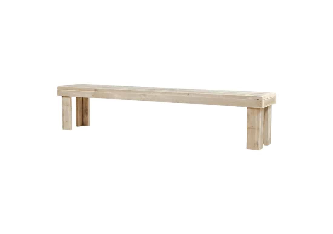 Lake is een steigerhouten bankje heeft L- vormige pootjes, dit maakt het bankje speciaal. Het steigerhouten bankje is erg mooi in combinatie met onze steigerhouten eettafels. Je kan het bankje opvrolijken door middel van een kussen.