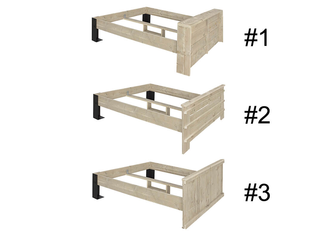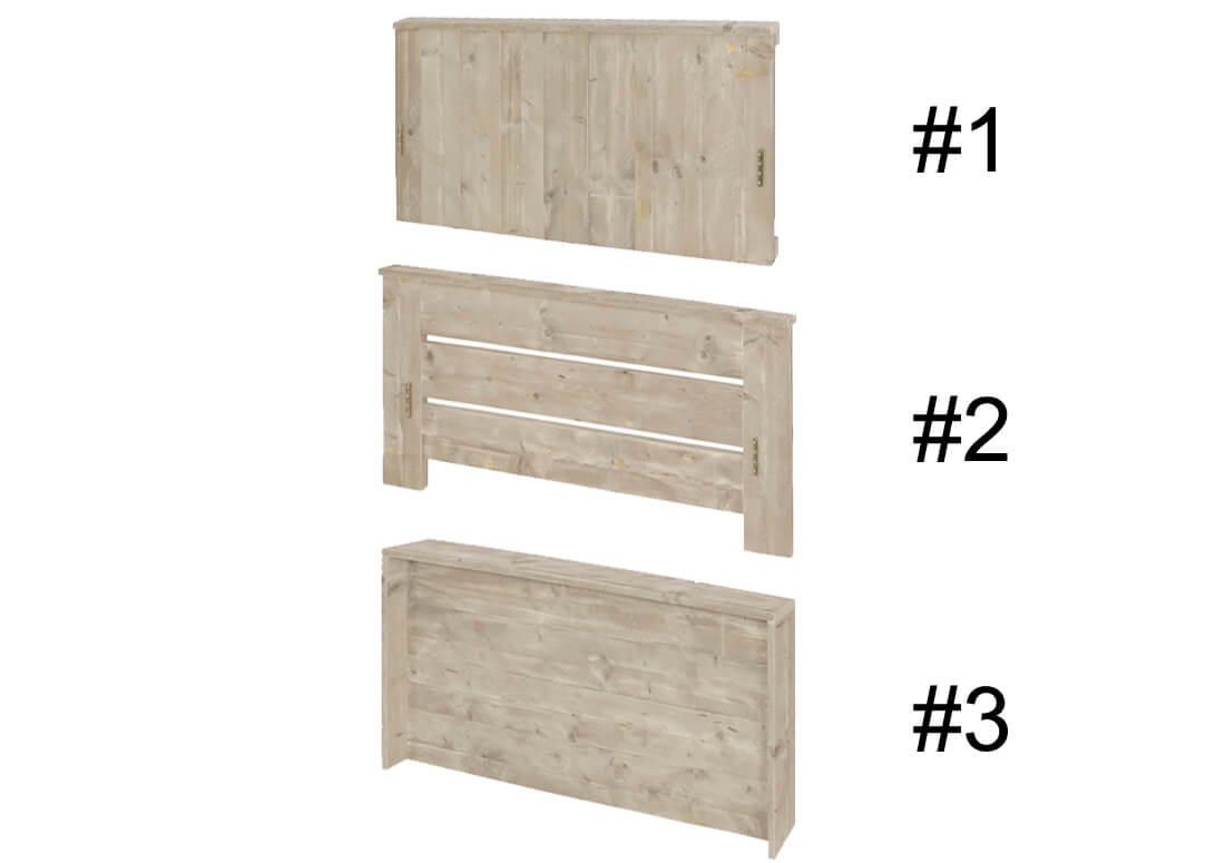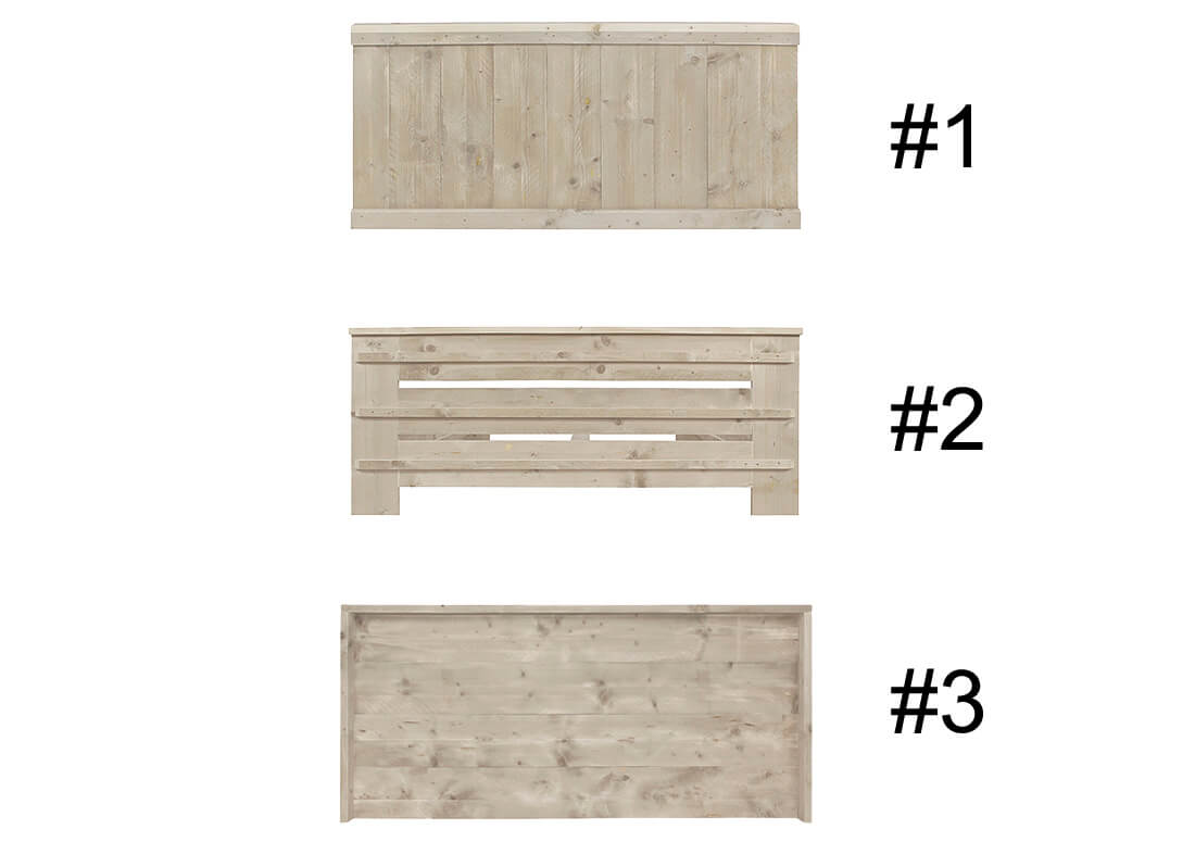 Kies jouw favoriete hoofdbord en natuurlijk de juiste afmetingen. Het is zelfs mogelijk extra opbergruimte toe te voegen en een bijpassend bankje.
