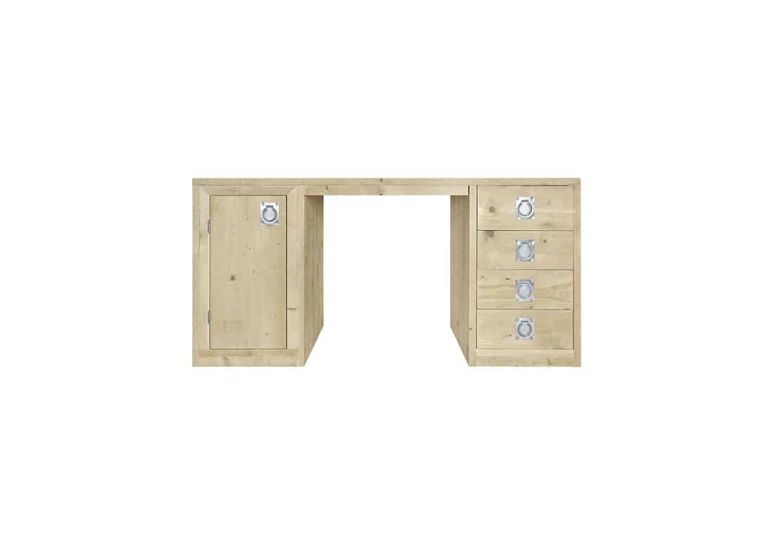 - Steigerhouten bureau voorzien van ijzeren handgrepen