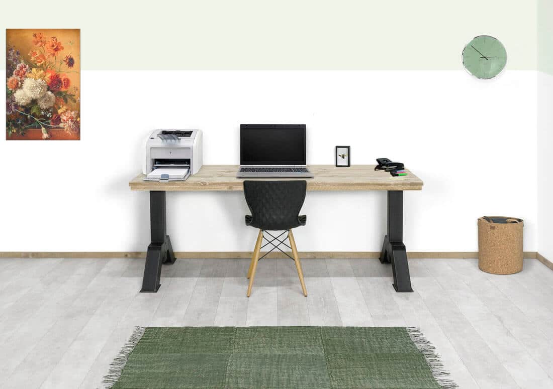Let op! Een eikenhouten vloer kan sneller reageren op metalen onderstellen door het aanwezige looizuur in het eiken (reactie eikenhout op ijzer).