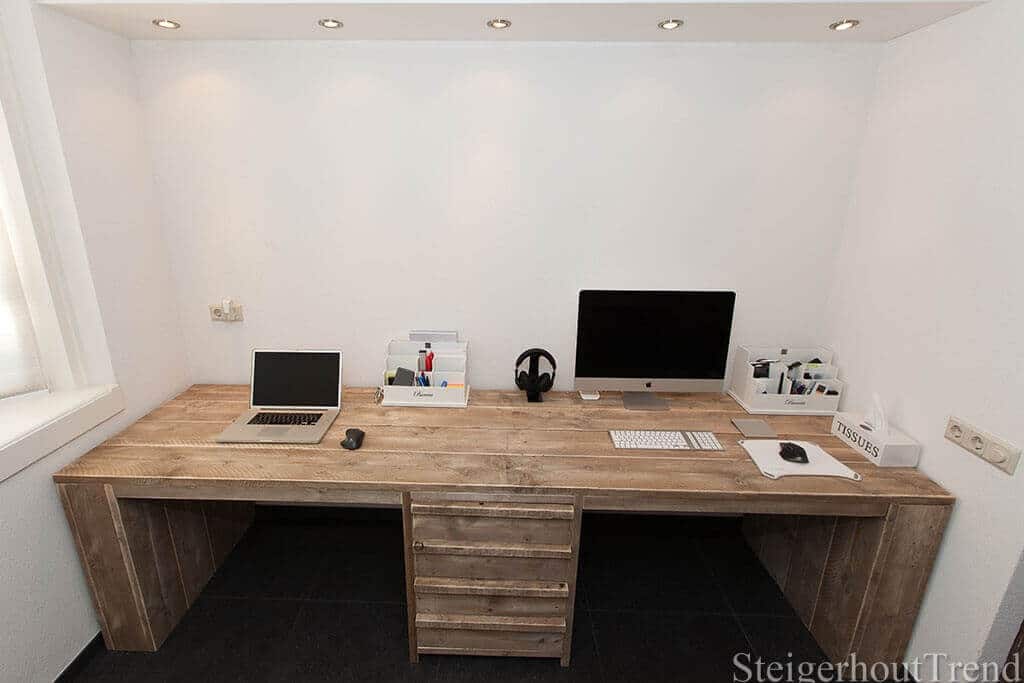 Dit model beschikt over twee dichte zijkanten. Het is mogelijk om dit bureau in zowel nieuw als gebruikt steigerhout te bestellen. Dit bureau is erg handig voor op kantoor, zo kun je twee tegenover elkaar plaatsen.