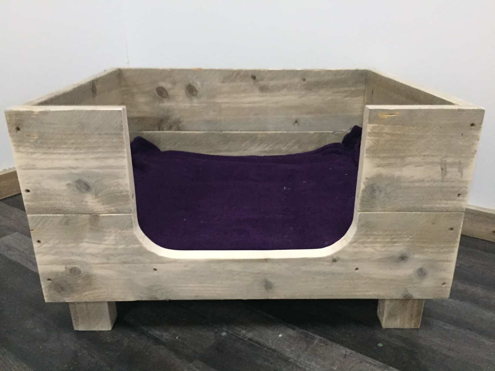 Laat jouw trouwe viervoeter genieten van een unieke en op maat gemaakt hondenmand. De mand is gemaakt van gebruikte steigerdelen die machinaal zijn geschuurd. Dat betekent dat ze splintervrij zijn. Met de lage instap en pootjes is deze mand perfect voor elke hond. Uiteraard is het mogelijk een kussen, die vuil- en waterafstotend is, erbij te bestellen. Deze maken wij op maat.