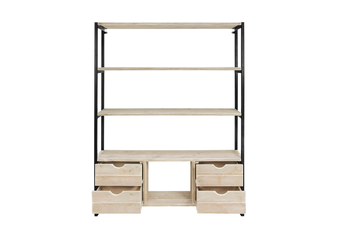 Industriële meubelen worden handgemaakt met steigerhout en staal. Voor de behandeling van het steigerhout kun je hier meer lezen. Door de ambacht kunnen poten altijd iets van elkaar afwijken en kunnen de poten lasspetters bevatten, dit hoort bij het product.