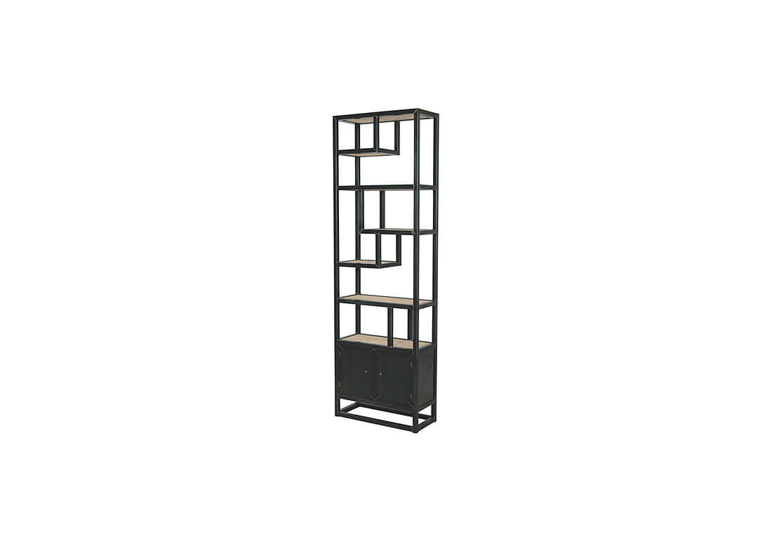 Kast Ewen is uniek in zijn soort. De speelse vakken en het stalen frame brengen modern en klassiek samen. Deze industriele kast heeft een stalen frame met steigerhouten legplanken. De kast heeft veel open vakken. Hier kun je perfect accessoires plaatsen. Onderin de kast bevinden zich twee opbergvakken met stalen deurtjes. Dit biedt ruimte om op te bergen