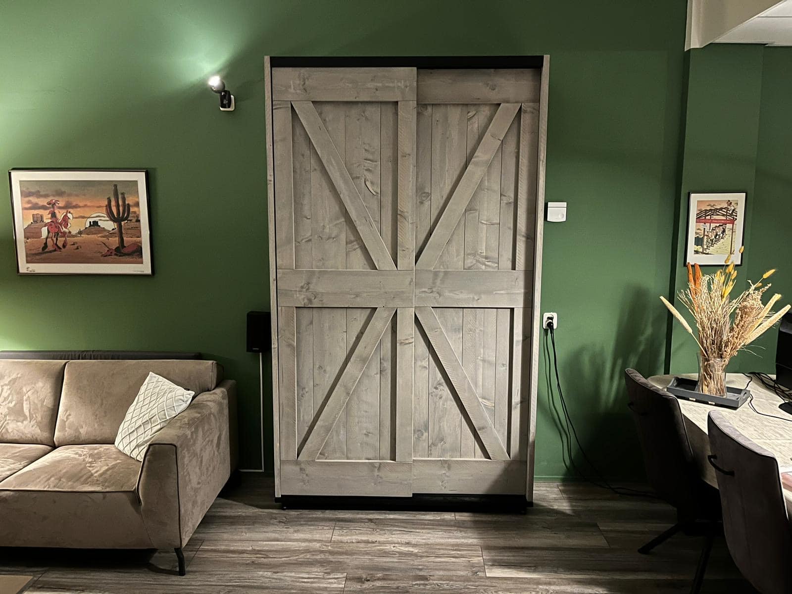 Is jouw motto opgeruimd staat netjes? Grote kans dat dit de perfecte steigerhouten kast is voor jou. Dankzij de schuifdeuren heb jij niet alleen de ideale oplossing voor een kleinere ruimte, maar ook nog eens alles perfect opgeborgen. De schuifdeuren zijn voorzien van een industrieel schuifsysteem. Hierdoor heeft de kast een robuuste en moderne look.
