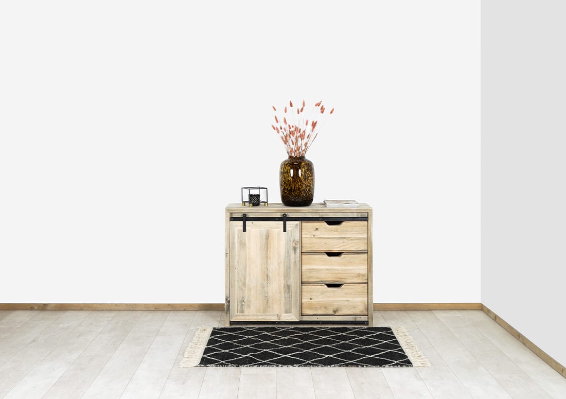Steigerhouten kast Ina met schuifdeur en lades