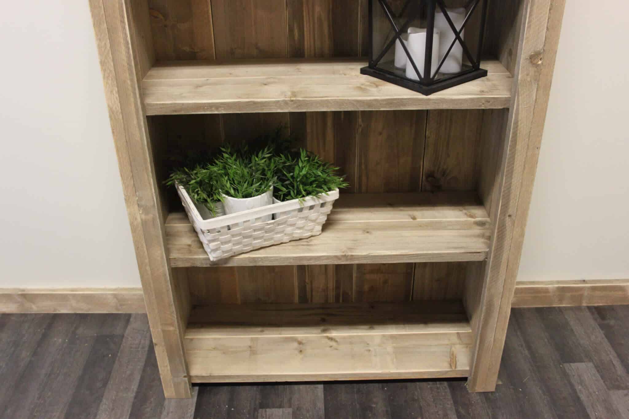 - Kast is te bestellen met steigerhouten achterwand, ideaal als boekenkast