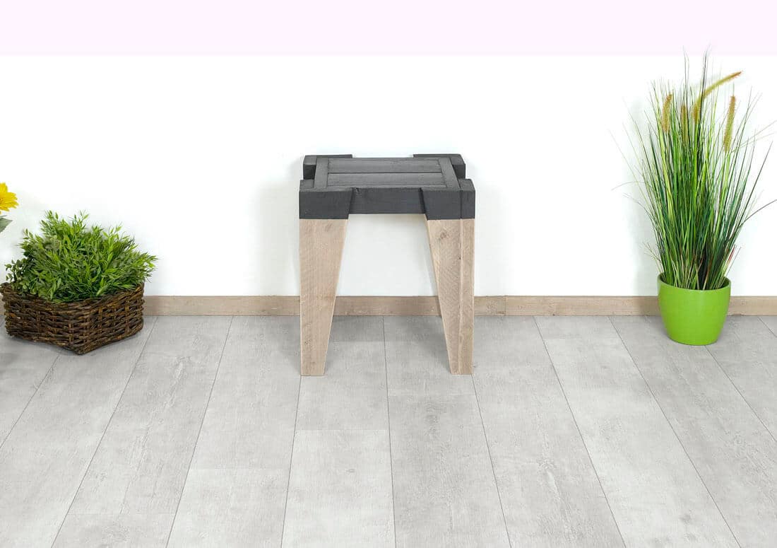 - Steigerhouten krukje met donker antraciet gespoten zitvlak