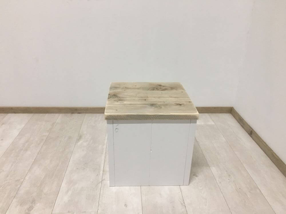 Steigerhouten krukje Soso is een handig en leuk krukje met een landelijke look. De steigerhouten krukjes worden machinaal geschuurd zodat ze splintervrij zijn. Onbehandeld kun je dit meubel ook gerust buiten laten staan omdat het steigerhout is. Wil je er extra lang van genieten? Dan adviseren we een coating. Wil je het steigerhouten krukje laten behandelen dan kunnen we het voorzien van bijvoorbeeld coating of wash voor een klein bedrag extra. Dit krukje is standaard geverfd in RAL 9010 (wit), een andere combinatie is ook mogelijk.