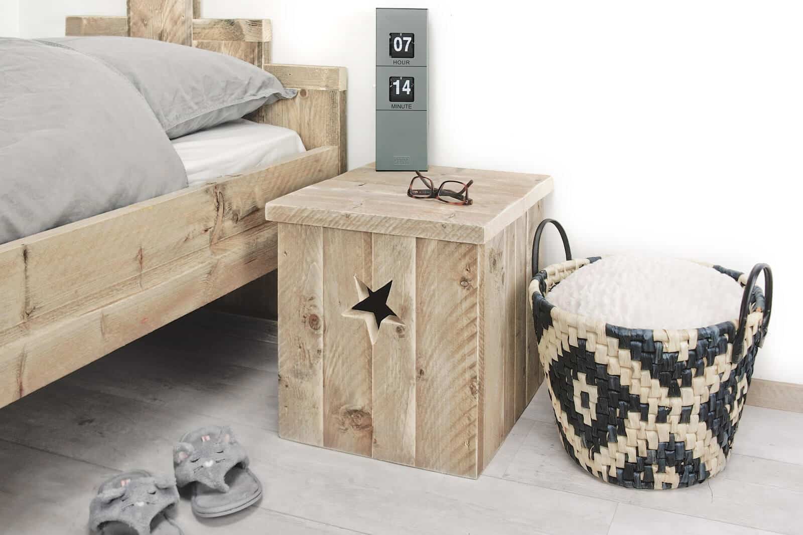 Steigerhouten nachtkastje Vidor met ster