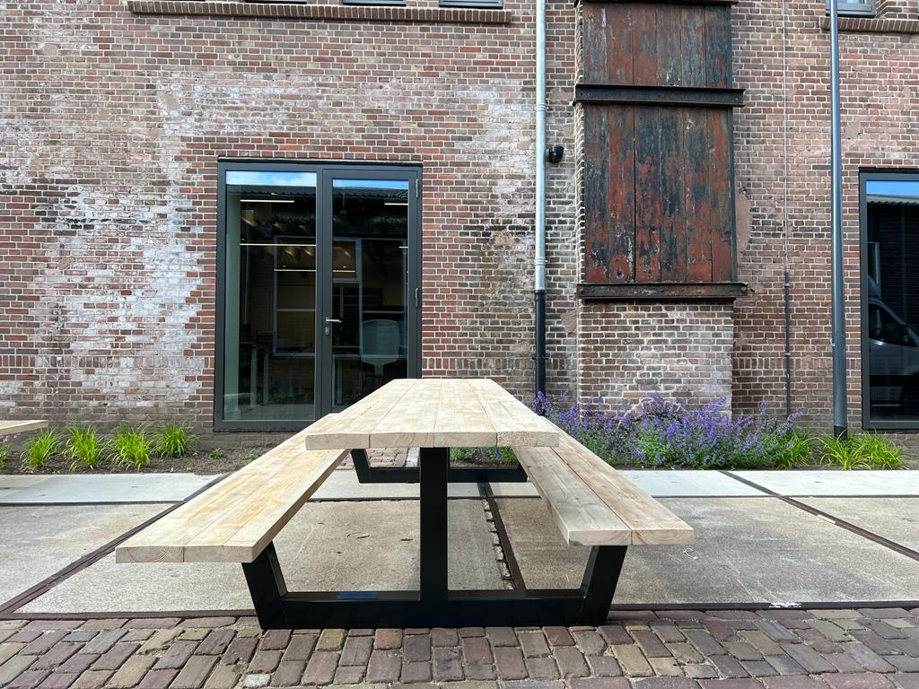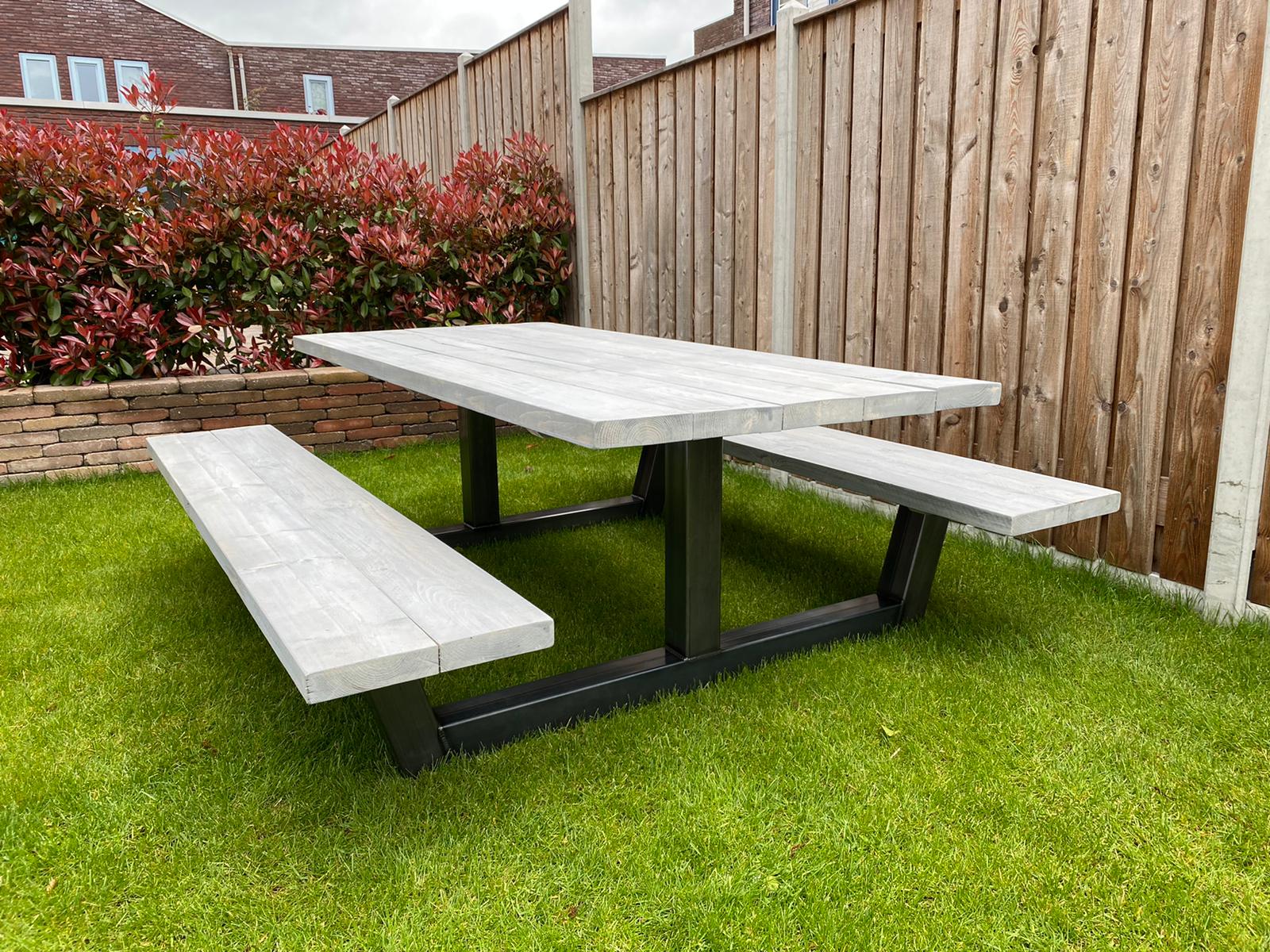 Een moderne picknicktafel die zeker niet in jouw tuin mag ontbreken, dat is picknicktafel Dogue. Deze picknicktafel past zeker in de huidige woontrends en is geheel op maat te bestellen.