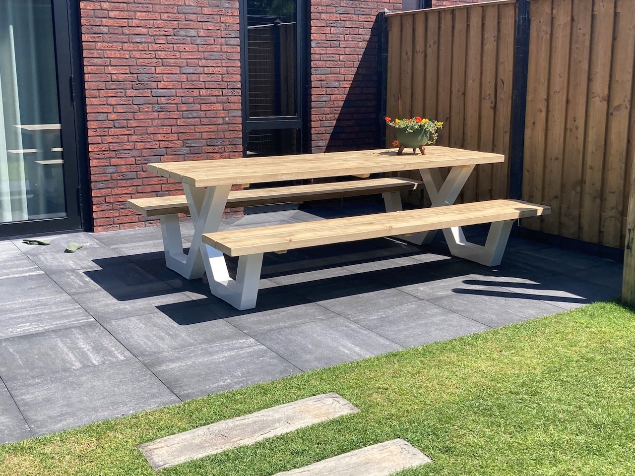 Op maat bestellen van steigerhouten picknicktafel Mingo