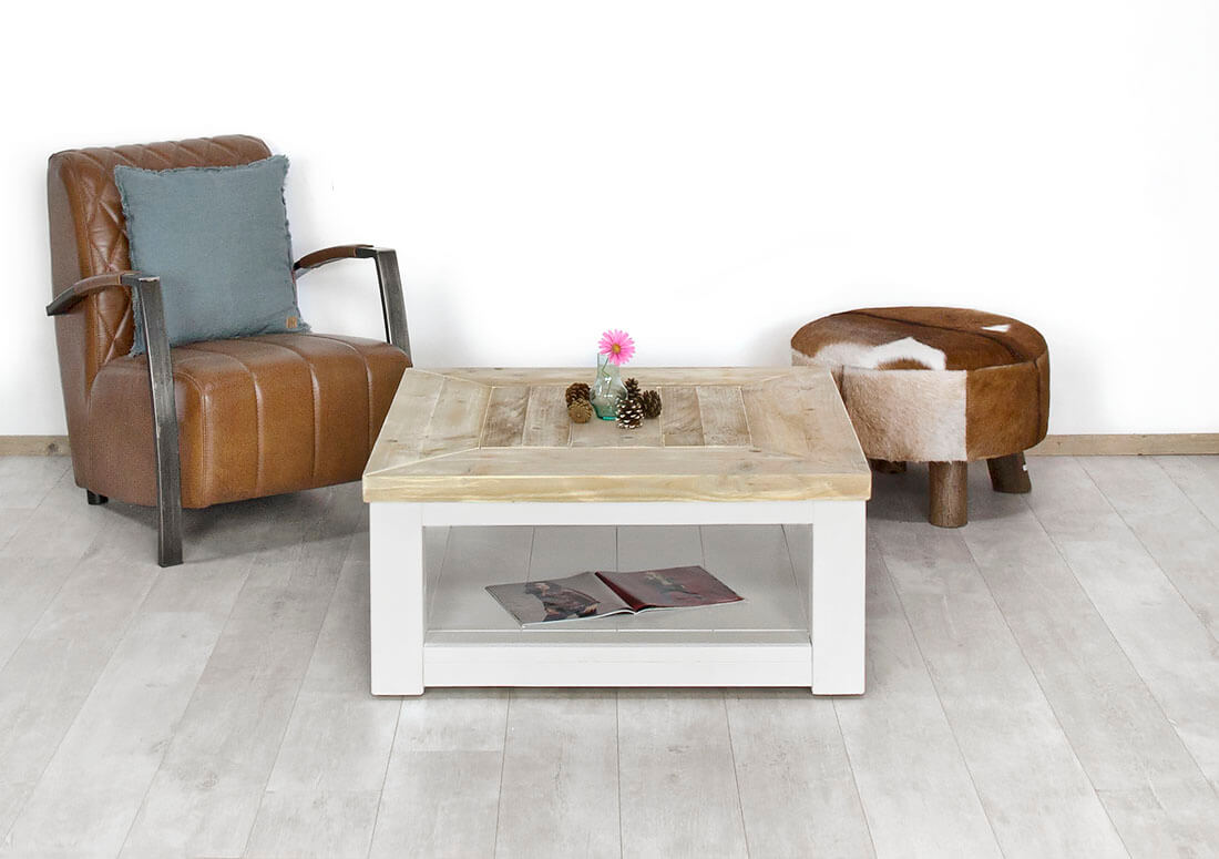 Steigerhouten salontafel Venlo met wit onderstel