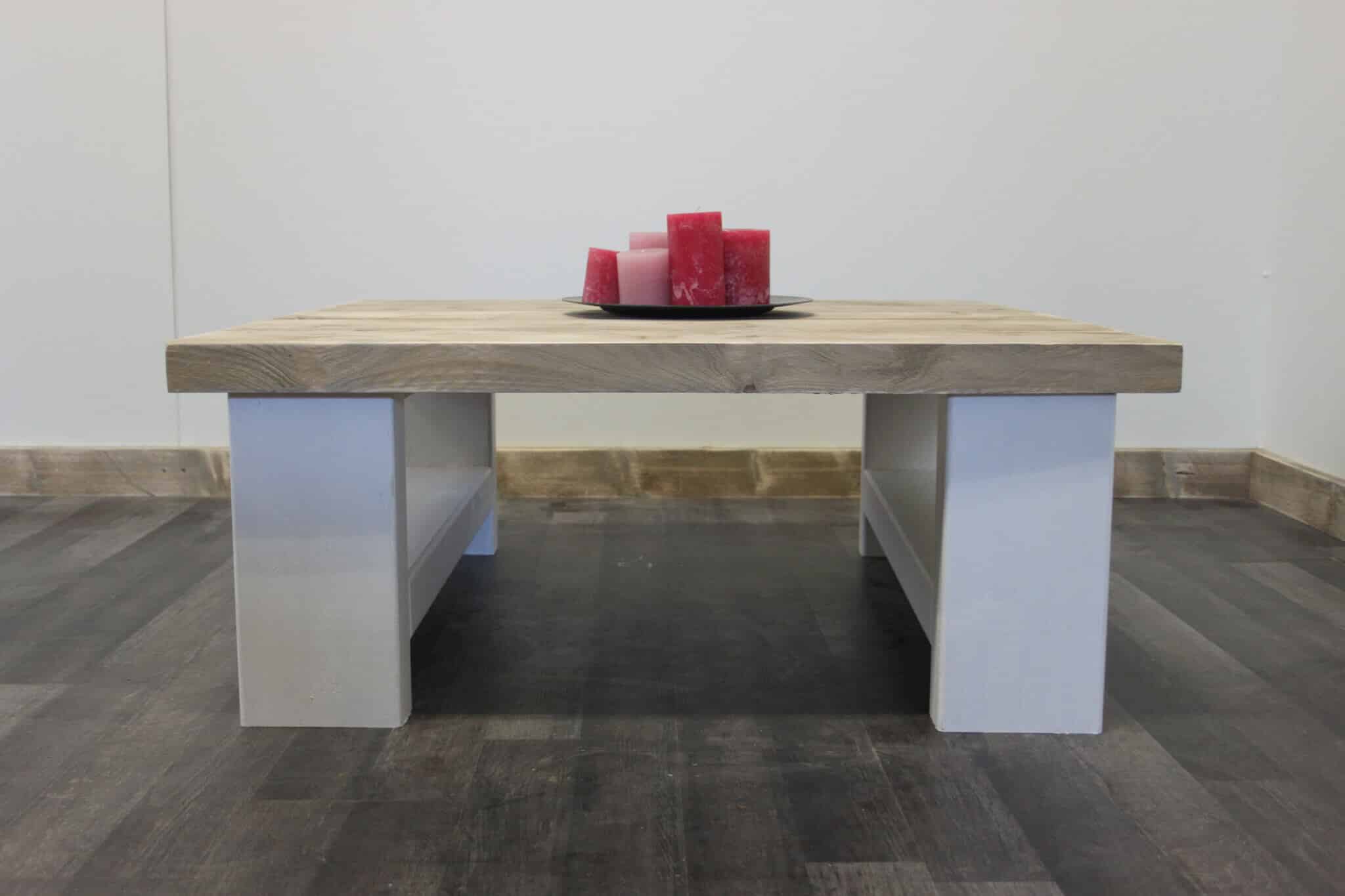 Steigerhouten salontafel Lincoln met witte H poten